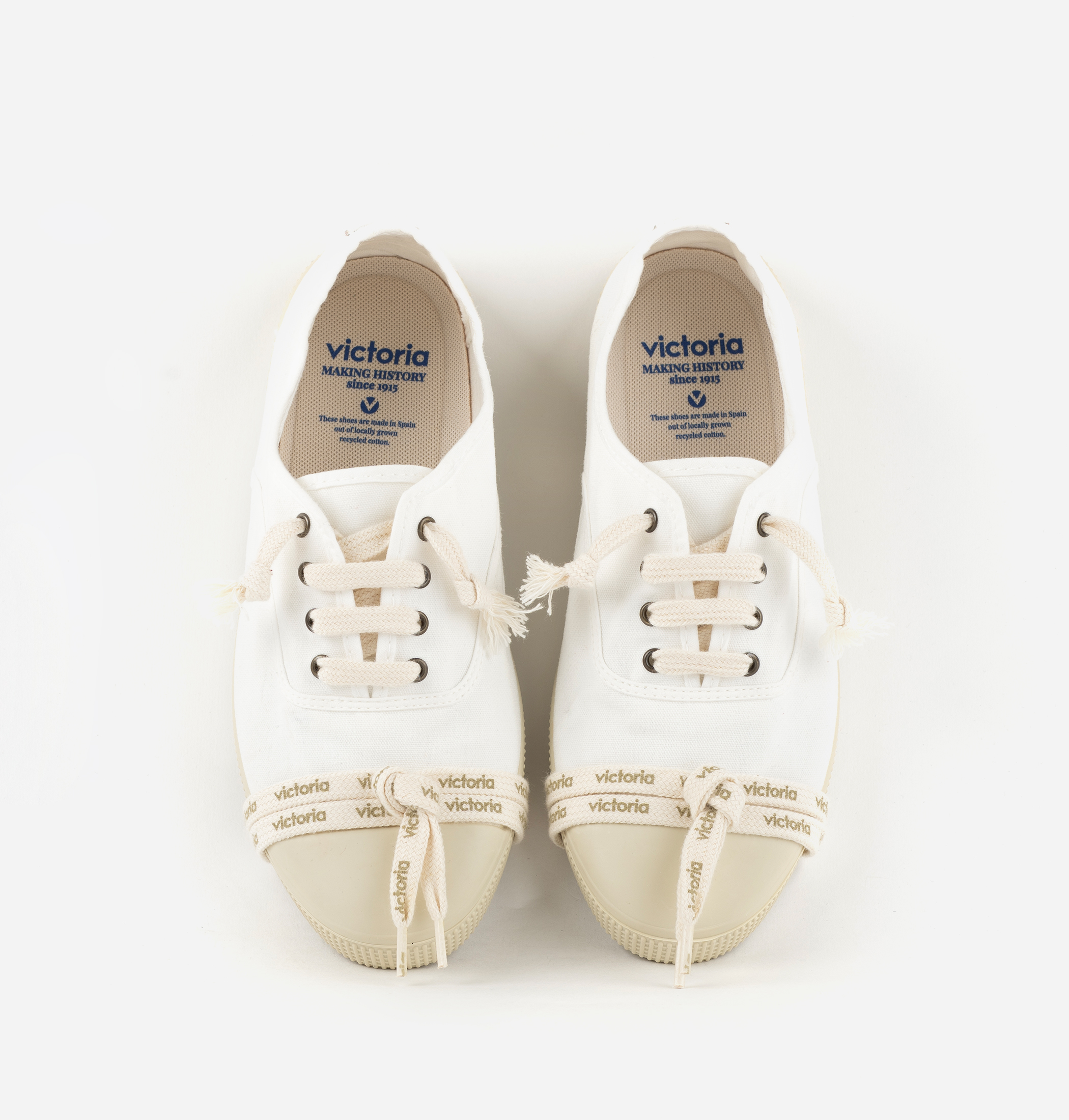 Estas zapatillas de lona para mujer y hombre están fabricadas en una combinación única de algodón reciclado DREC® (Dyeable Recycled Eco Cotton) y algodón ecológico cultivado, hilado y tejido en España. Incorporan cierre con cordones en crudo e incluyen un segundo par con el logotipo de victoria. Cómoda suela de caucho vulcanizado con refuerzo en la puntera, para una mayor resistencia y durabilidad.