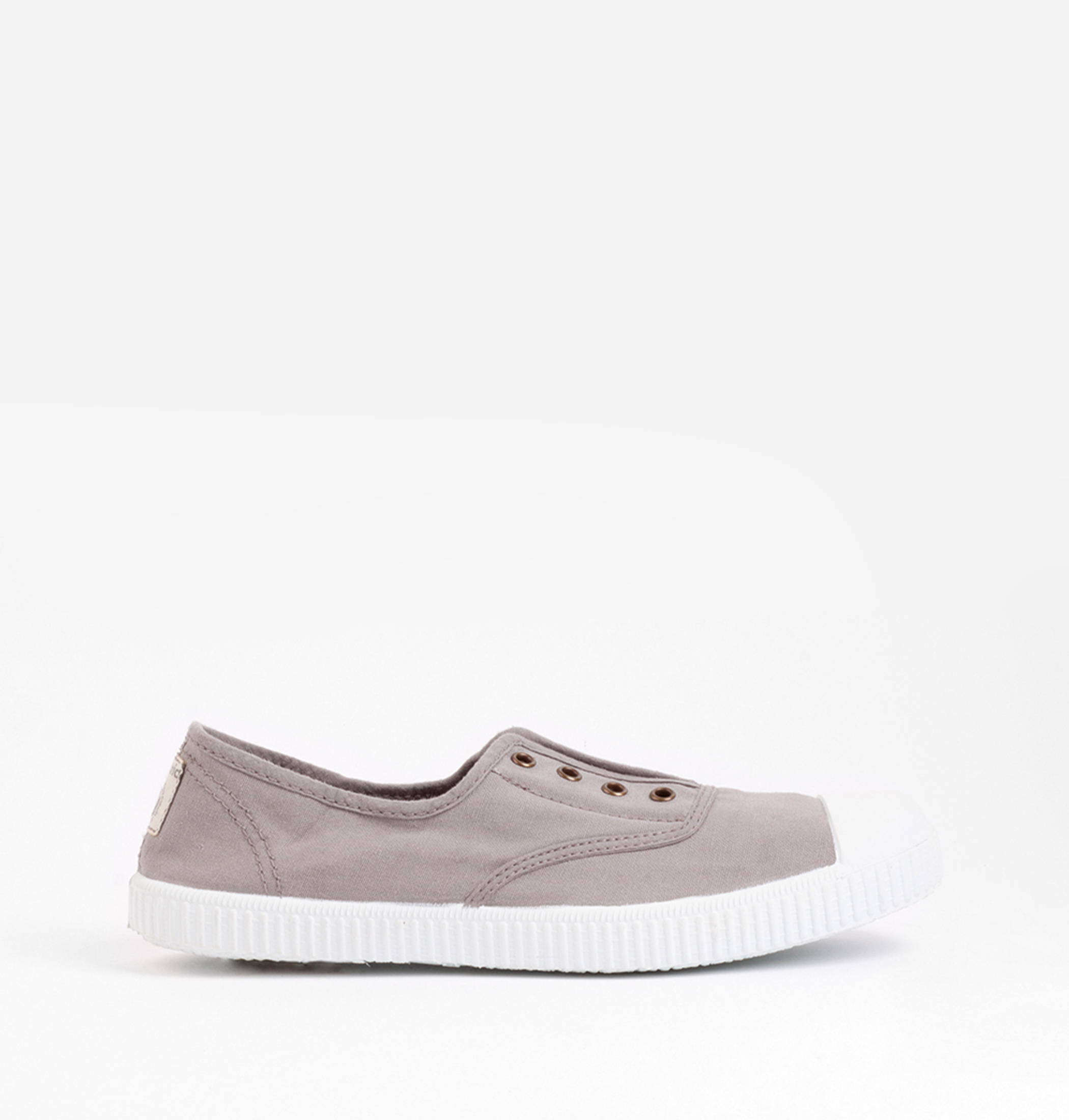 Zapatillas de lona sin cordón para mujer fabricadas en una combinación única de algodón reciclado DREC® (Dyeable Recycled Eco Cotton) y algodón ecológico cultivado, hilado y tejido en España.