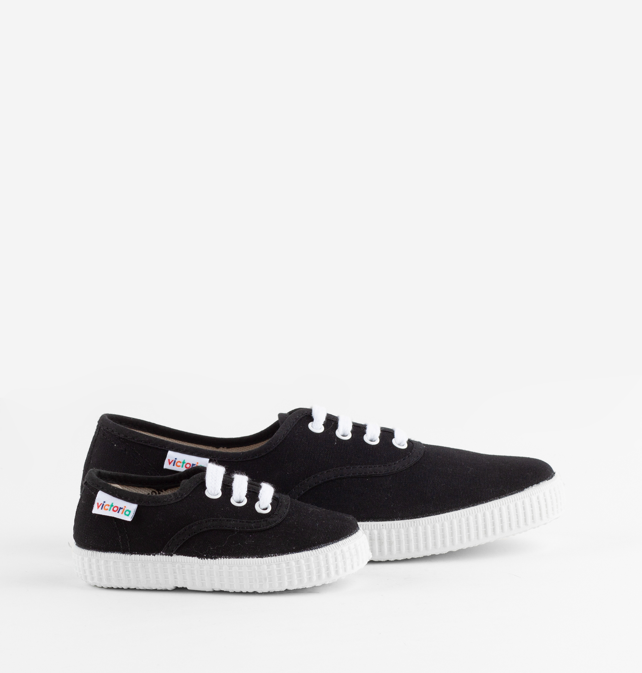Estas zapatillas de lona se encuentran disponibles en todas las tallas y son fabricadas con algodón ecológico cultivado, hilado y tejido en España. Incorporan una etiqueta distintiva con el logo multicolor de victoria cosida en el lateral. Cierre mediante cordones blancos. Suela flexible de caucho natural vulcanizado.