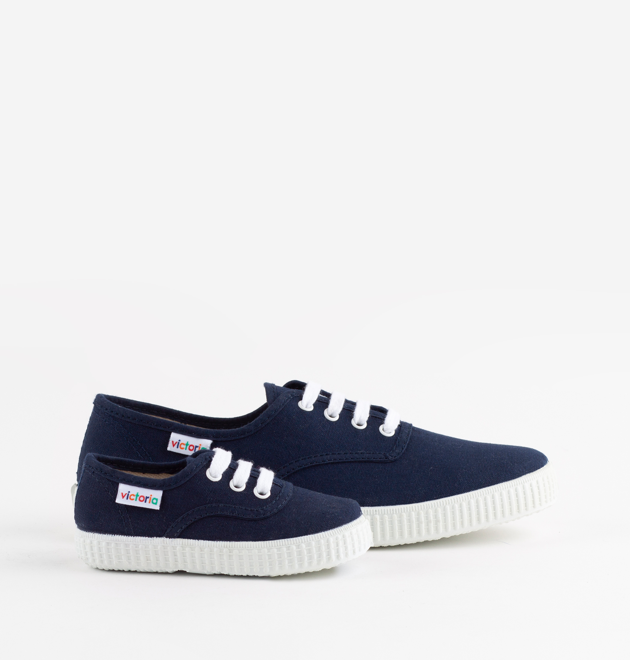 Estas zapatillas de lona se encuentran disponibles en todas las tallas y son fabricadas con algodón ecológico cultivado, hilado y tejido en España. Incorporan una etiqueta distintiva con el logo multicolor de victoria cosida en el lateral. Cierre mediante cordones blancos. Suela flexible de caucho natural vulcanizado.
