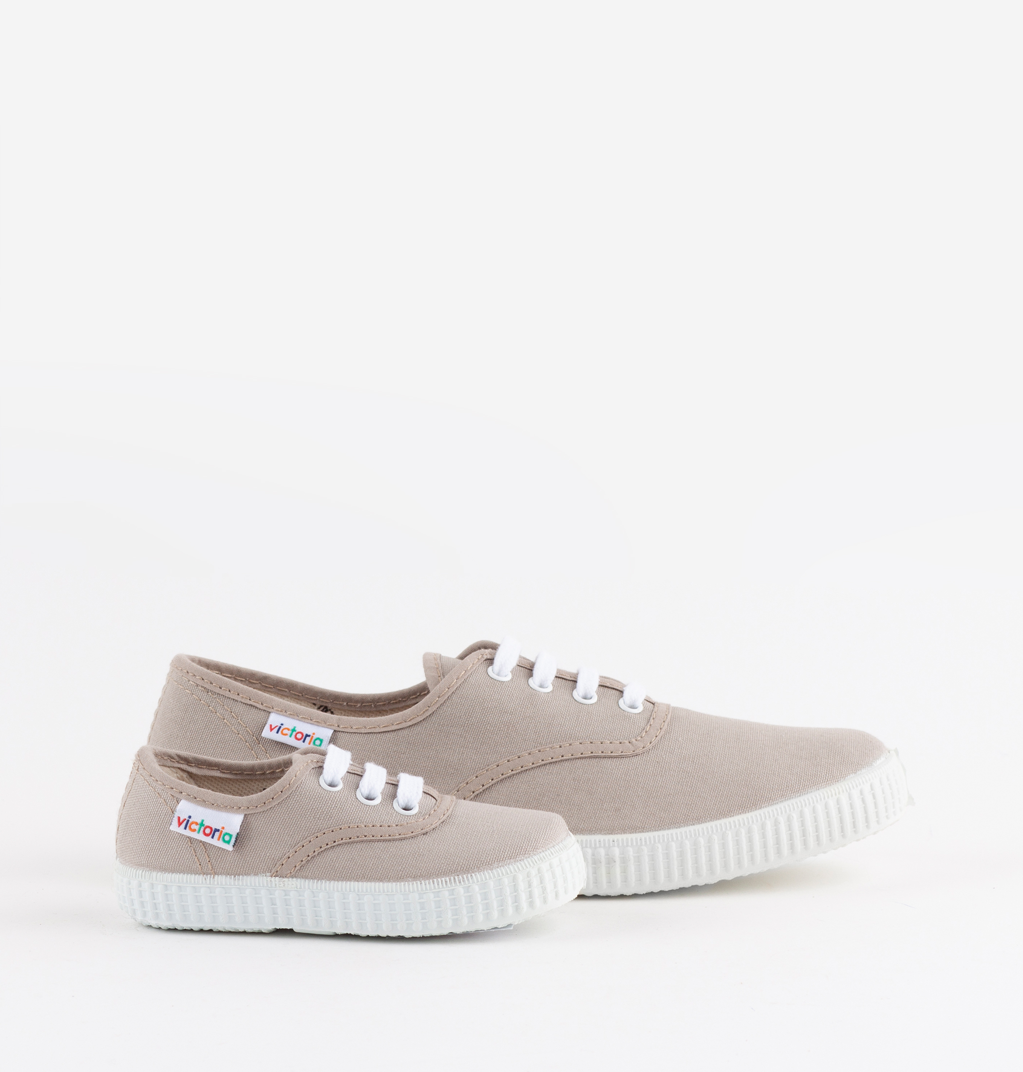 Estas zapatillas de lona se encuentran disponibles en todas las tallas y son fabricadas con algodón ecológico cultivado, hilado y tejido en España. Incorporan una etiqueta distintiva con el logo multicolor de victoria cosida en el lateral. Cierre mediante cordones blancos. Suela flexible de caucho natural vulcanizado.
