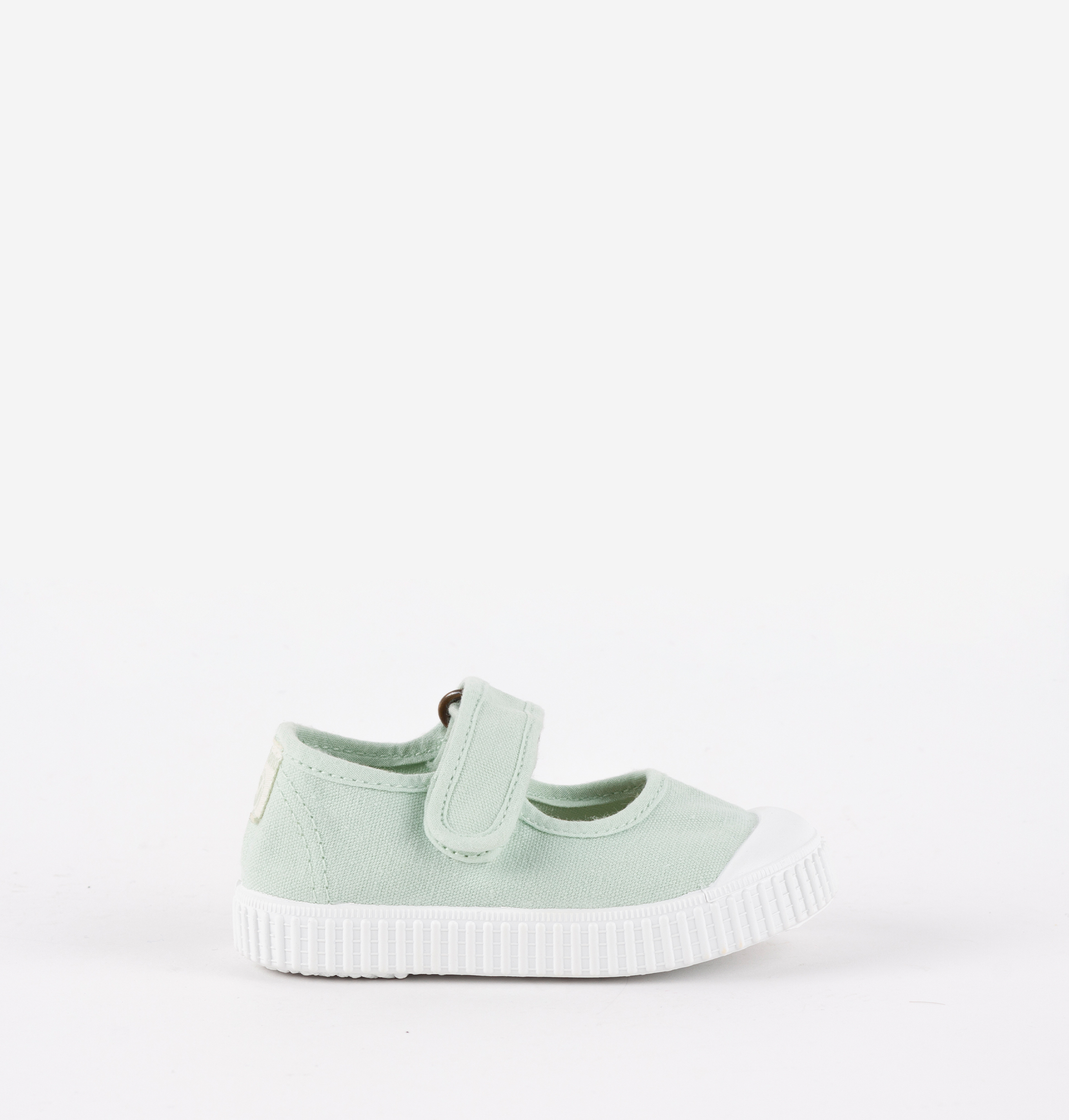 Merceditas de lona para niños fabricadas en una combinación de algodón reciclado DREC® (Dyeable Recycled Eco Cotton) y algodón ecológico cultivado, hilado y tejido en España. Cierre con tira adherente para un ajuste fácil y seguro. Suela de TR flexible con refuerzo en la puntera para una mayor resistencia y durabilidad.