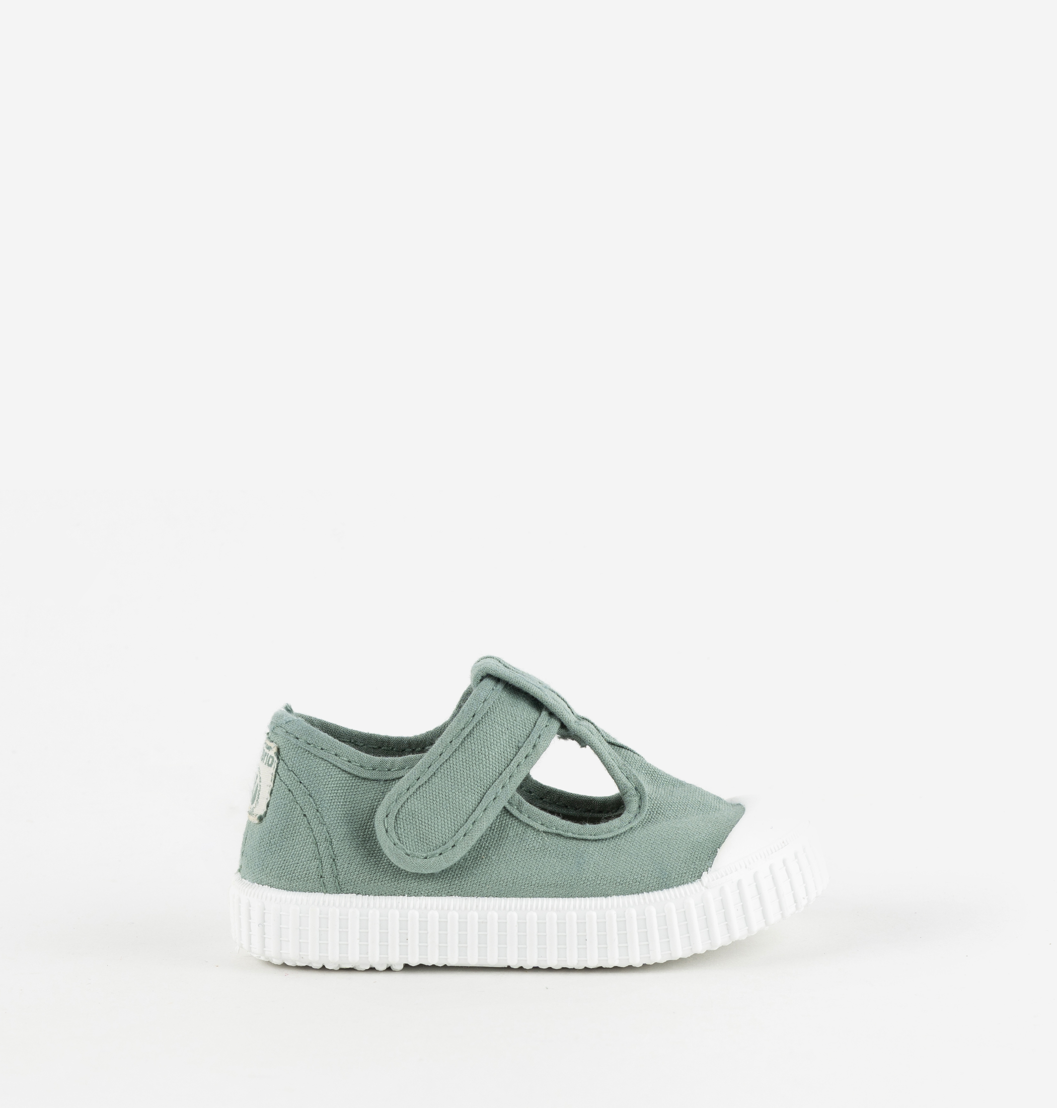 Sandalias de lona para niños fabricadas en una combinación de algodón reciclado DREC® (Dyeable Recycled Eco Cotton) y algodón ecológico cultivado, hilado y tejido en España. Cierre con tira adherente para un ajuste fácil y seguro. Suela de TR flexible con refuerzo en la puntera para una mayor resistencia y durabilidad.