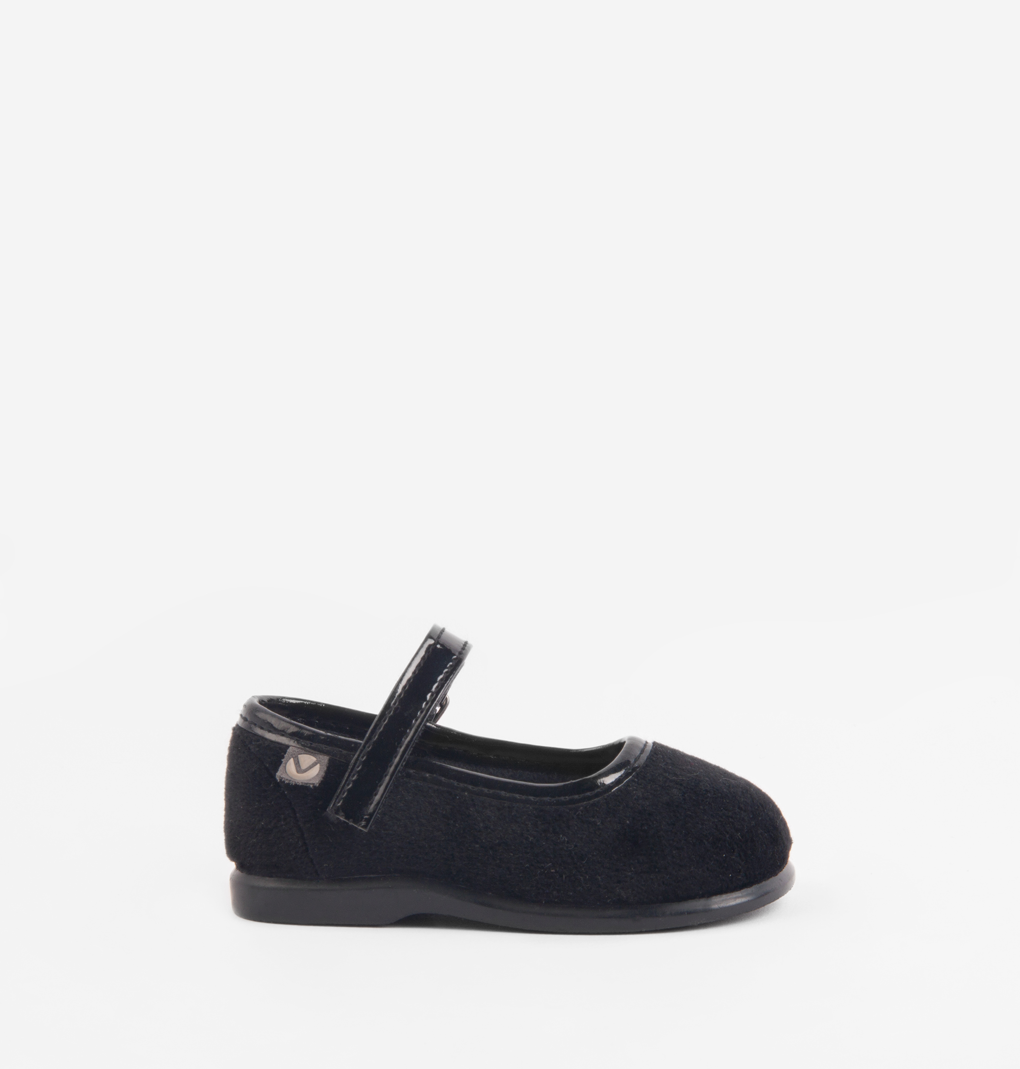 Merceditas de terciopelo para niña. Detalles en charol y cierre mediante tira adherente que facilita el calce y fomenta su autonomía. Están fabricadas en España, con una suela de caucho natural muy flexible que asegura comodidad y perfecto ajuste para los pies de las más pequeñas. Además, cuentan con una plantilla interior que añade confort adicional.