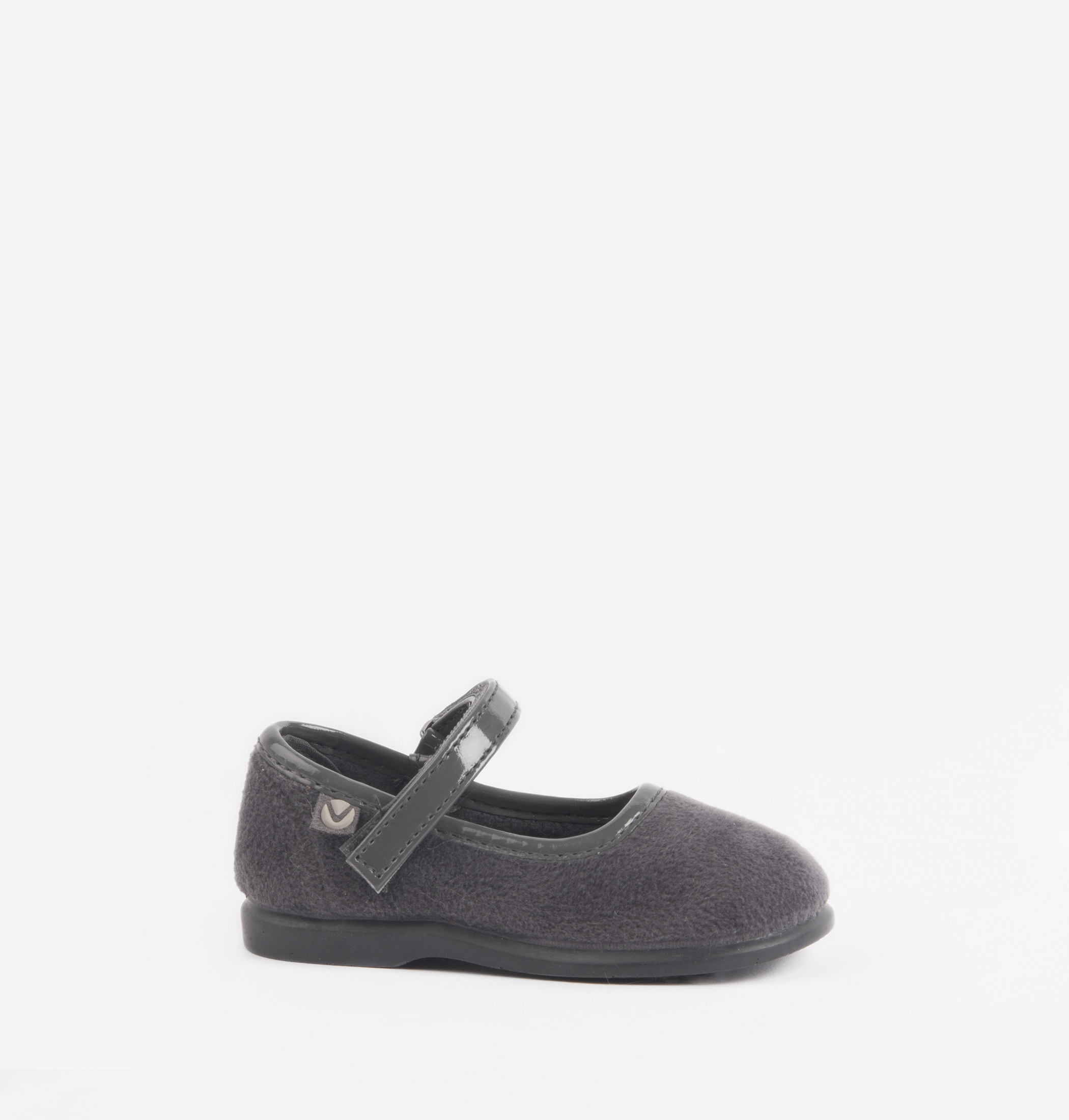 Merceditas de terciopelo para niña. Detalles en charol y cierre mediante tira adherente que facilita el calce y fomenta su autonomía. Están fabricadas en España, con una suela de caucho natural muy flexible que asegura comodidad y perfecto ajuste para los pies de las más pequeñas. Además, cuentan con una plantilla interior que añade confort adicional.