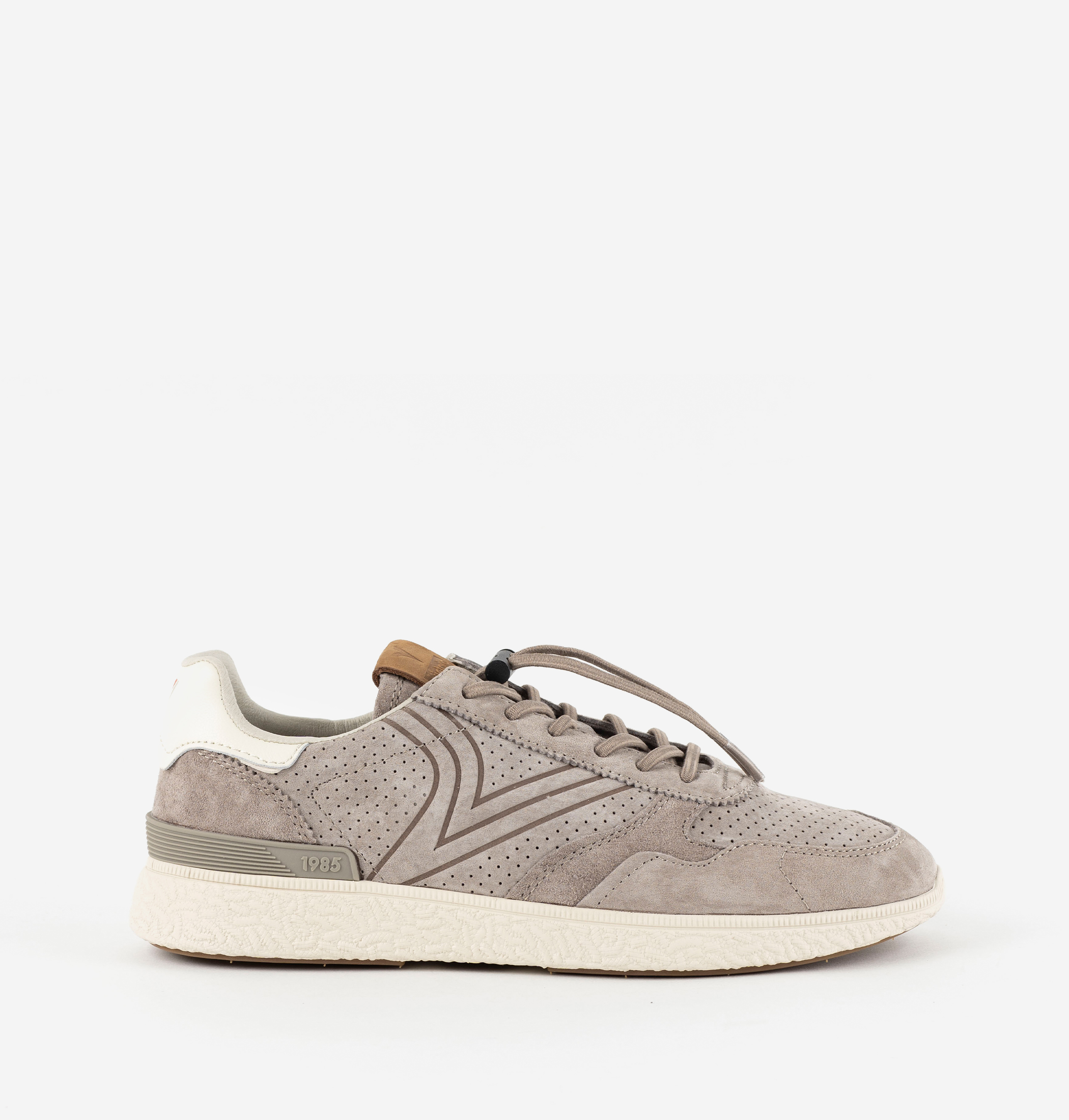 Zapatillas deportivas para hombre fabricadas en serraje. Pieza trasera en blanco en contraste. Cierre mediante cordones elásticos de tipo redondo al tono con sistema autobloqueante, que permiten un ajuste rápido y cómodo sin necesidad de anudar. Suela blanca rugosa de phylon con estabilizador en el talón. Incluyen además una plantilla ergonómica que se adapta a la forma del pie y regala la sensación de comodidad.