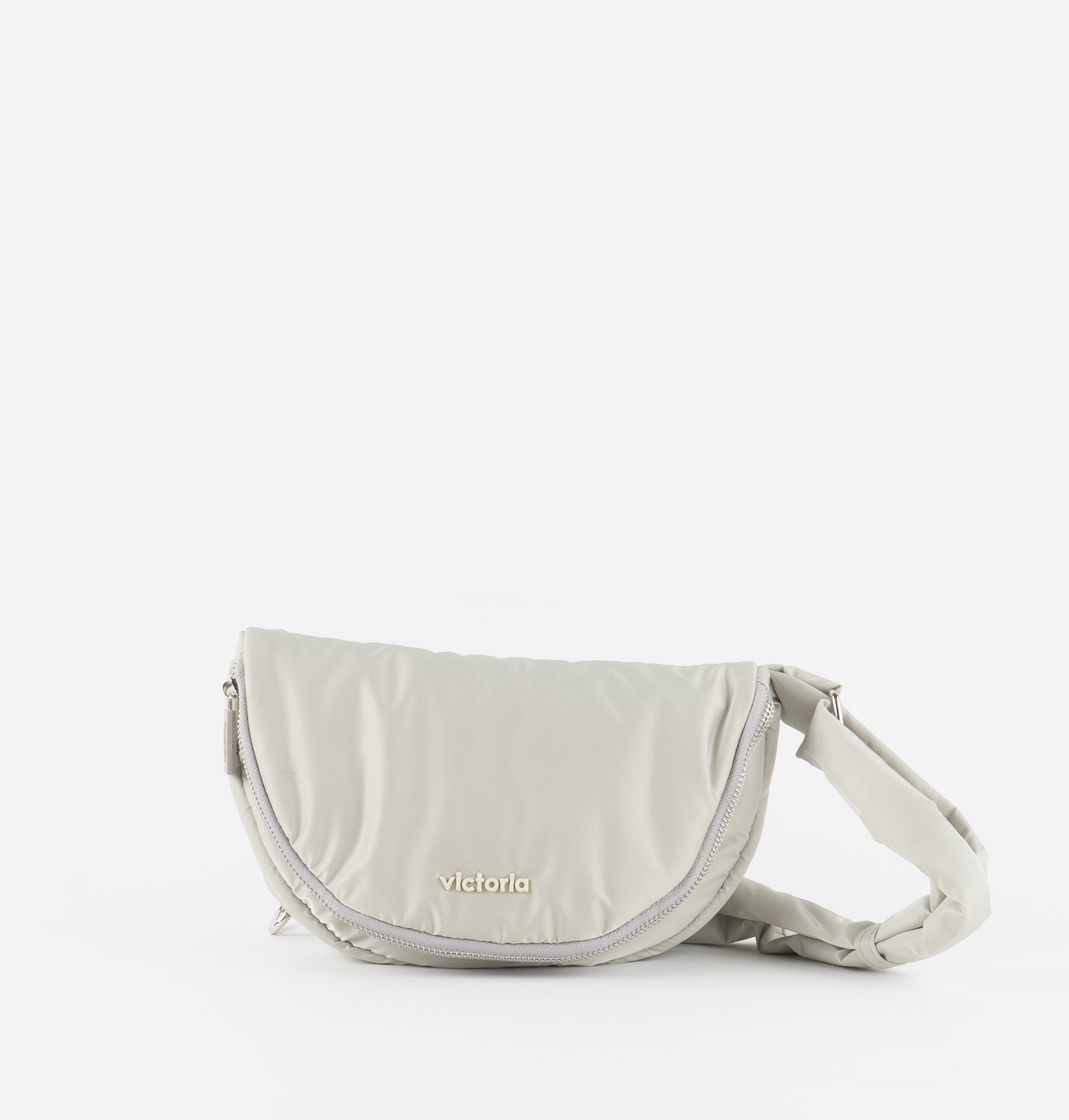 Bolso bandolera media luna para mujer con asa ajustable y arandela para poder colgar nuestro monedero a juego. Cierre de cremallera con tirador personalizado. Incluye forro y bolsillo interior. Chapita de marca exterior metálica.
