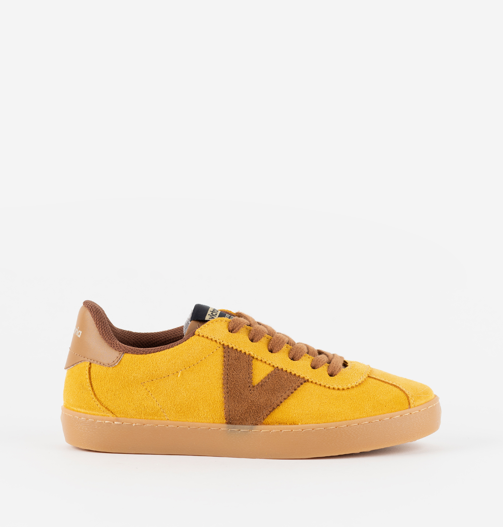 V del lateral en contraste, a juego con la pieza trasera y la lengüeta en efecto piel. Cierre mediante cordones también al tono y forro interior. Su suela traslúcida color caramelo aporta un toque de estilo retro. Además, incluyen una plantilla más ergonómica, confeccionada a partir de materiales reciclados, proporcionando un confort superior en cada paso.