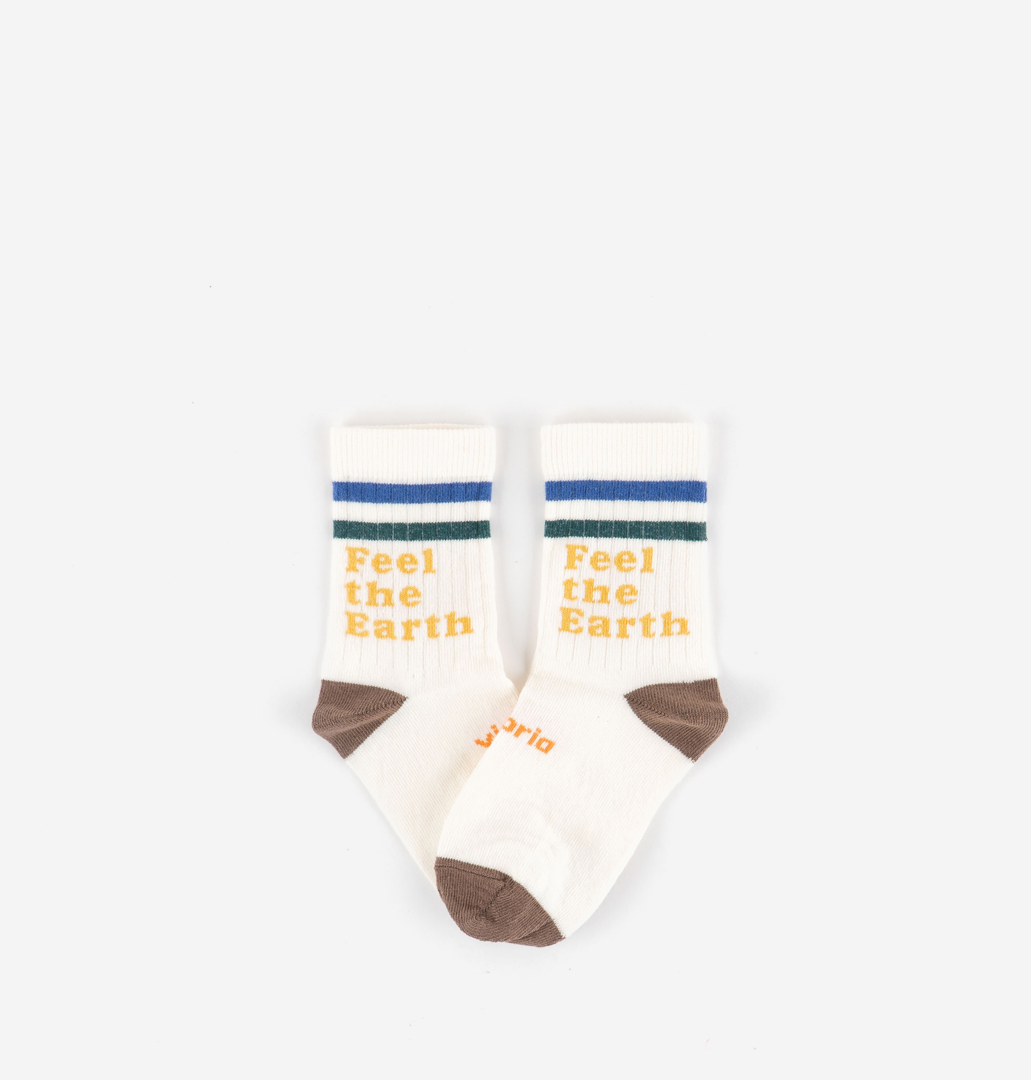 Calcetín barefoot de algodón con detalle de rayas y bordado Feel the Earth. Perfecto para combinar con nuestras sneakers.