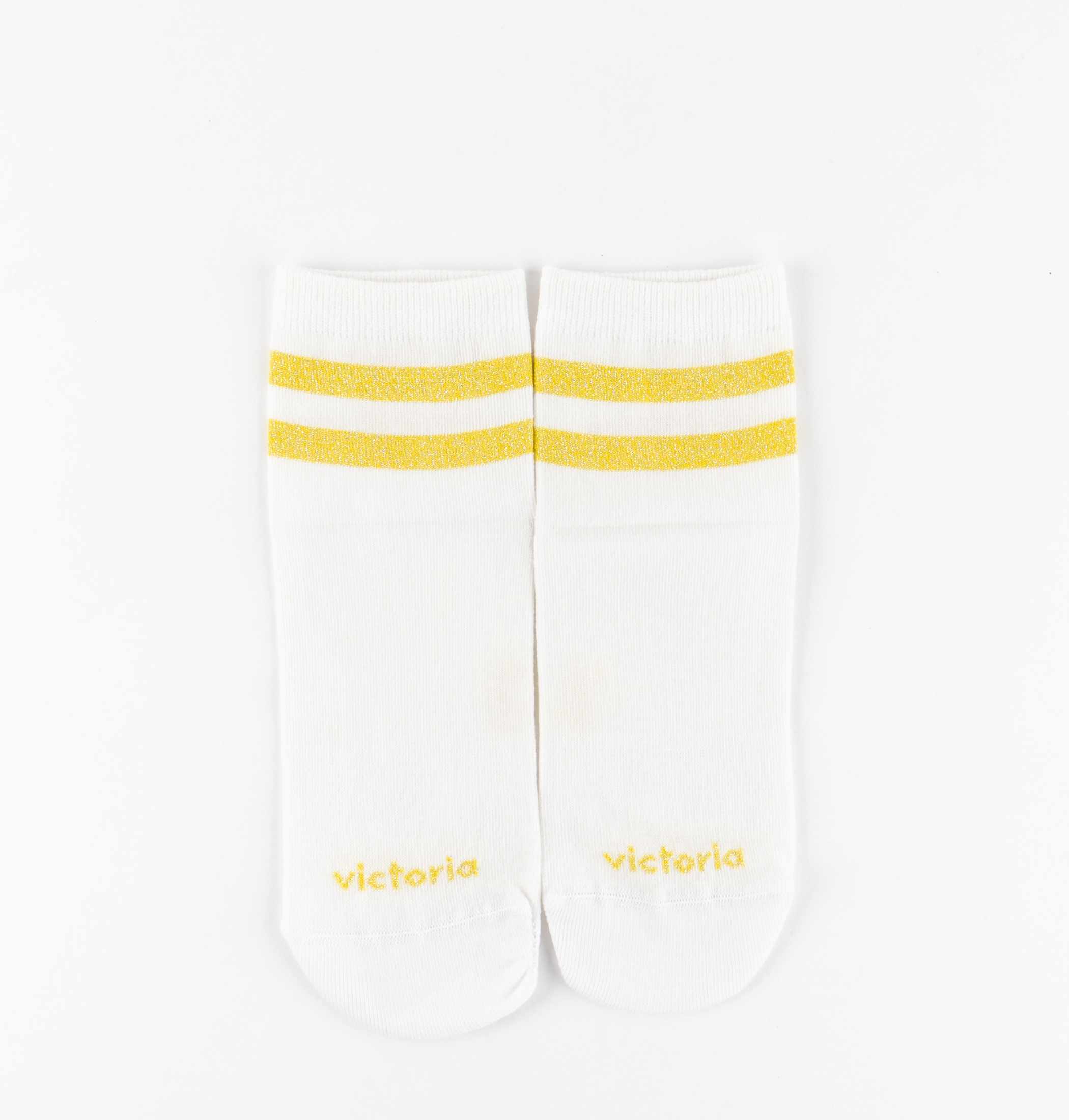 Calcetín barefoot de algodón para mujer con detalle de rayas y bordado de la marca a juego. Perfecto para combinar con nuestras zapatillas.