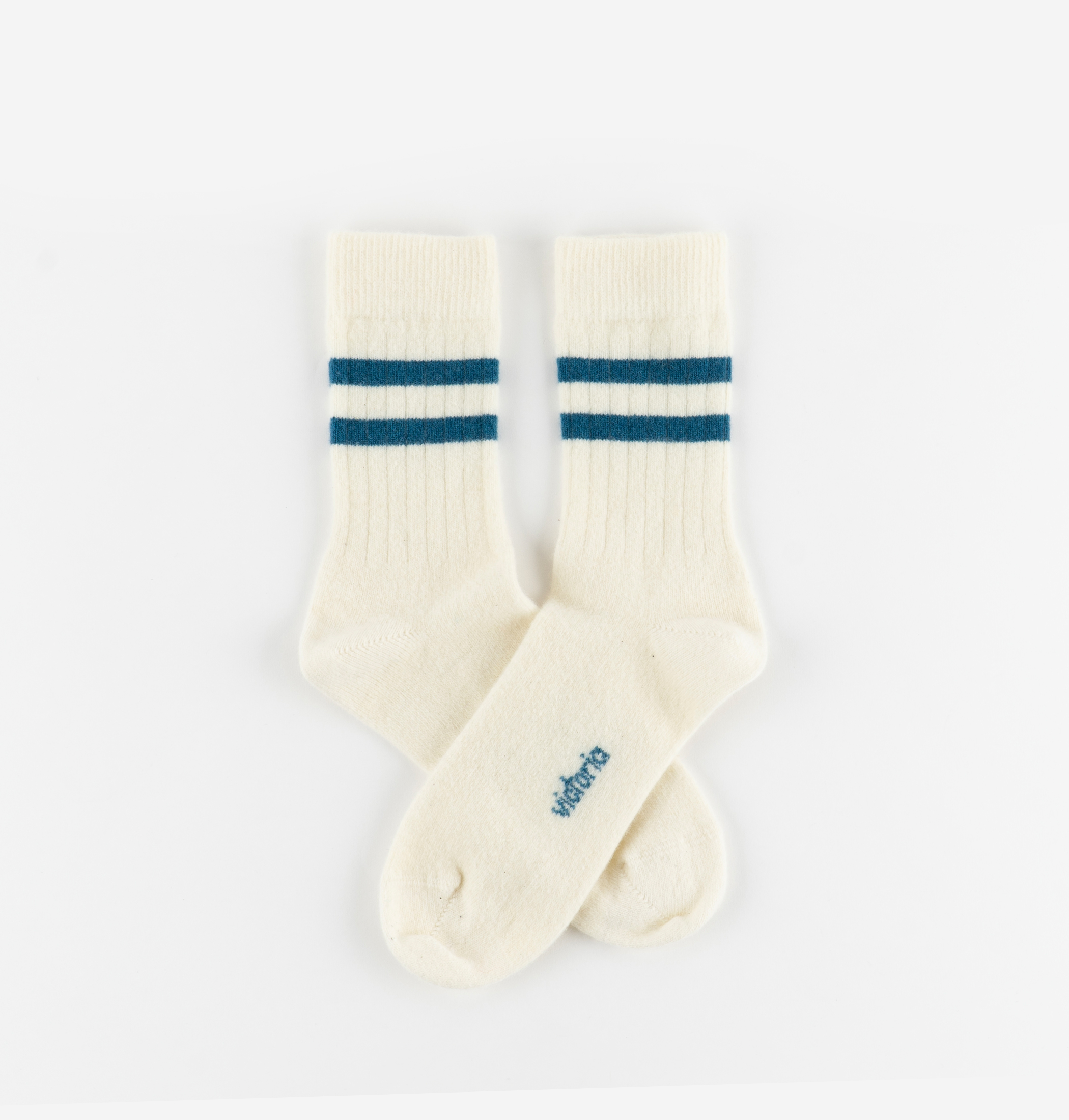 Calcetín de cachemir natural con detalle de rayas. Perfecto para combinar con nuestras sneakers.