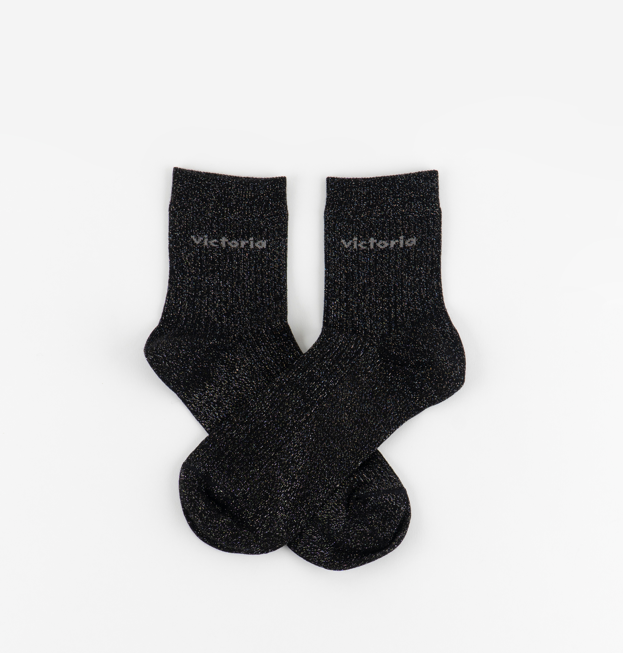 Calcetín lurex liso con bordado de victoria. Perfecto para combinar con nuestras sneakers.