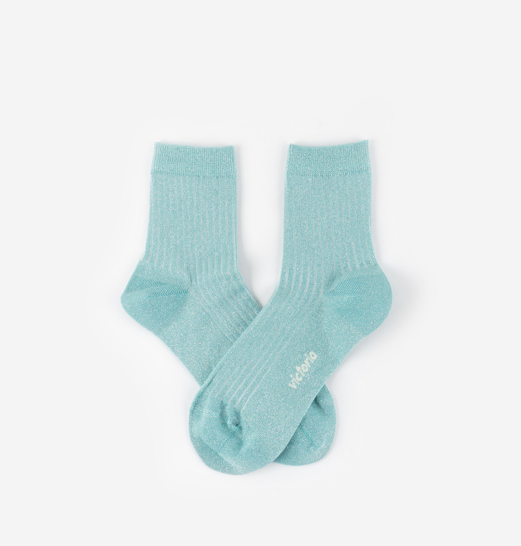 Calcetín lurex para mujer con bordado de la marca en la planta. Perfecto para combinar con nuestras zapatillas.