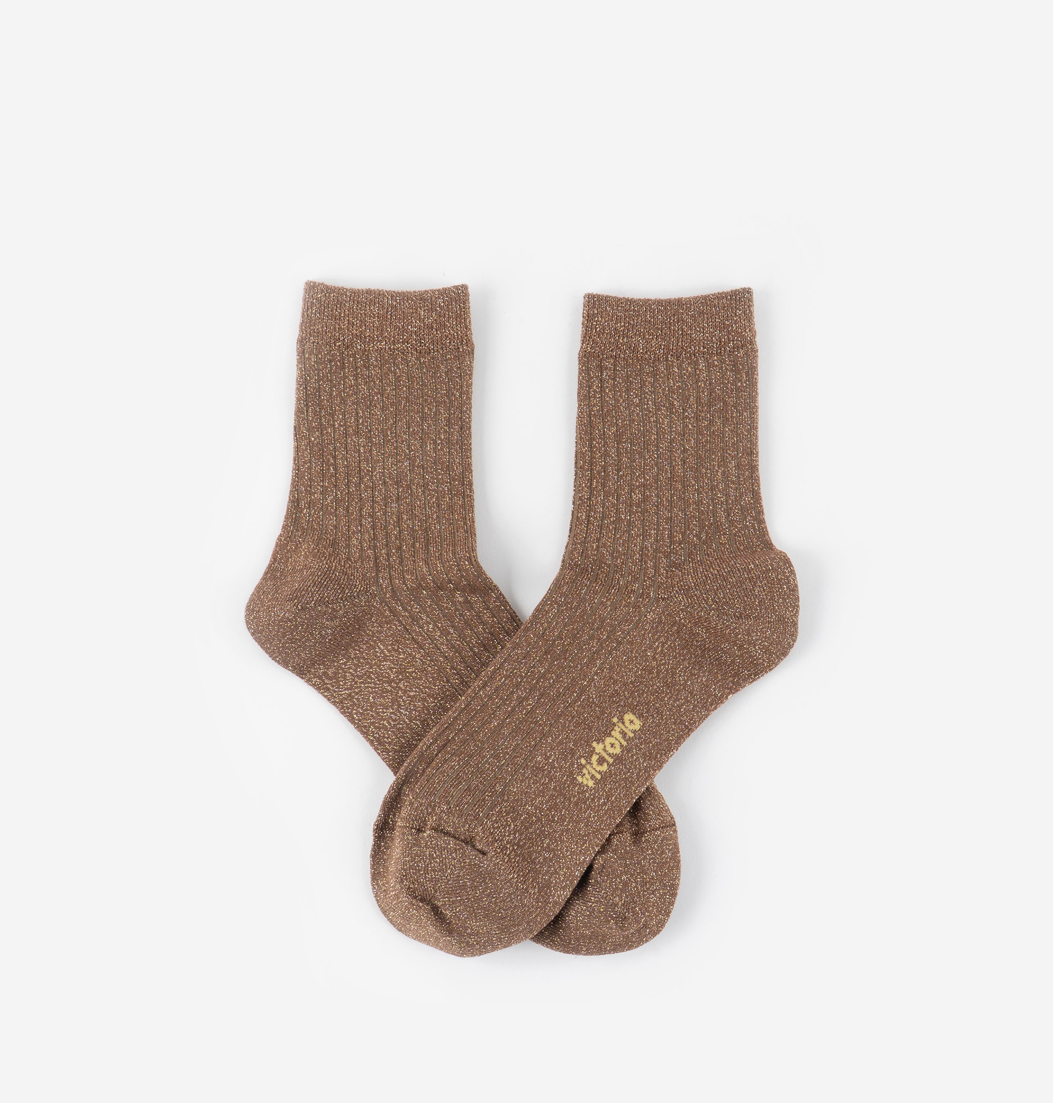 Calcetín lurex para mujer con bordado de la marca en la planta. Perfecto para combinar con nuestras zapatillas.