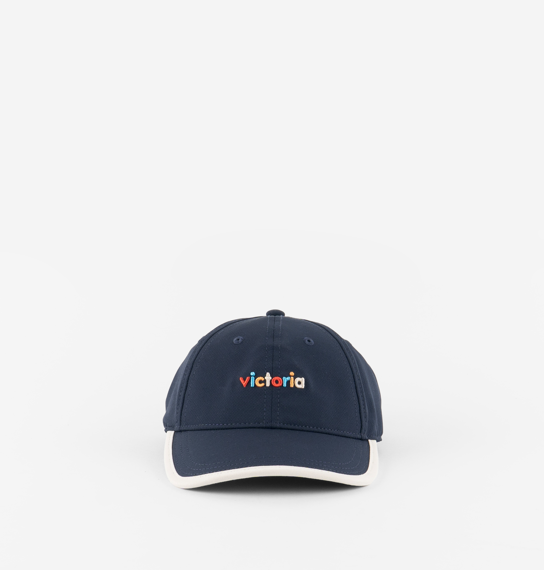 Gorra para niños con visera y cierre adhesivo ajustable. Detalle bordado multicolor de la marca. Tejido de rápido secado.