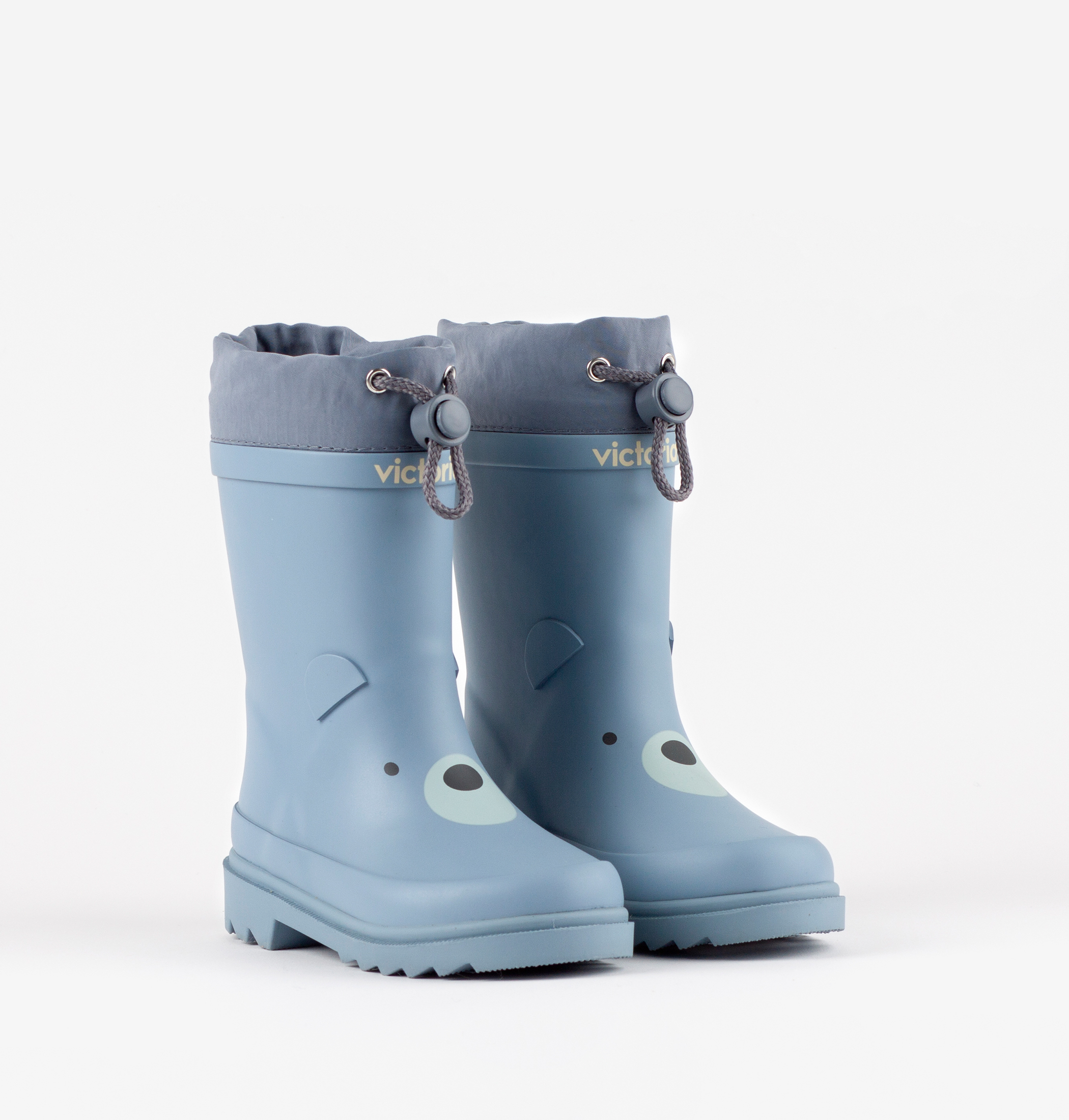 Botas de agua para niños con motivo de animales. Grabado de victoria en la parte superior. Forro interior, cierre de cordón y tope para ajustar perfectamente y favorecer el calce y la sujeción. Fabricadas en caucho lo que las hace más transpirables. Suela de goma antideslizante.
