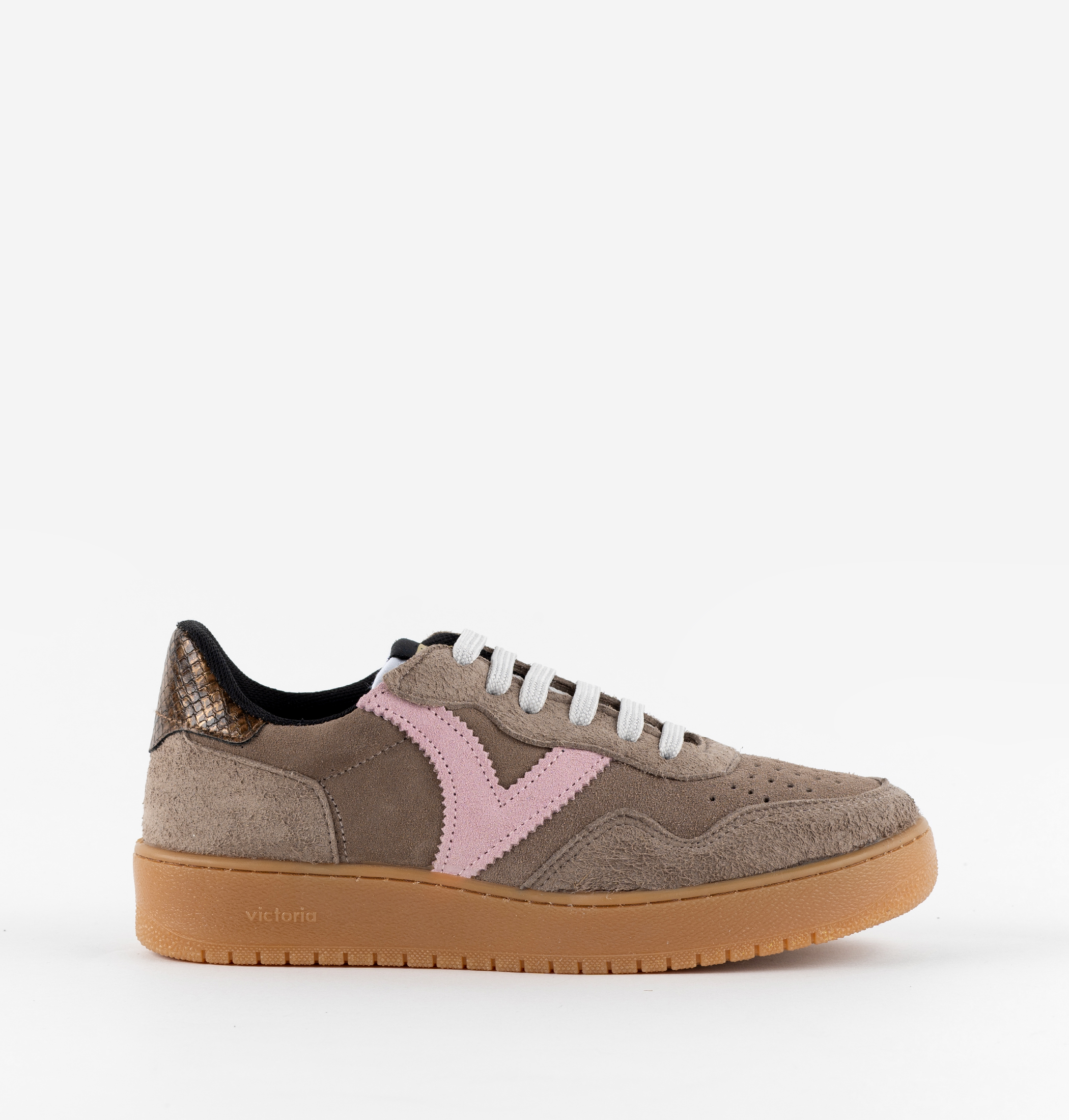 V del lateral en rosa y detalle animal print en pieza trasera. Suela de 3 cm en color caramelo compuesta por aceites vegetales en lugar de minerales reduciendo así el impacto medioambiental.