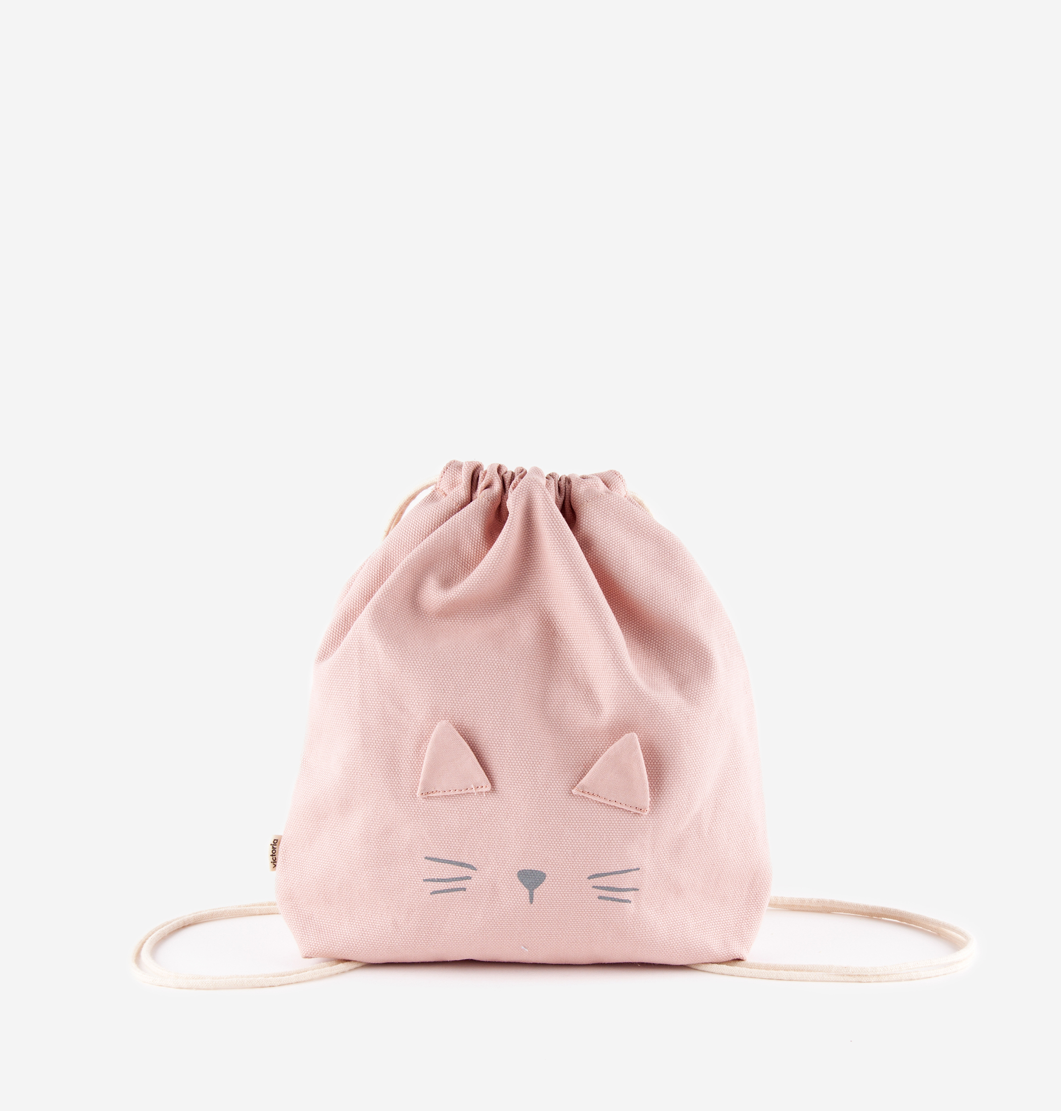 Bolsita-Mochila 100% algodón eco fabricada en España con forma de animalitos. Perfecta para los más pequeños, se abre y cierra tirando de las asas de cordón de algodón y es muy ligera y fácil de lavar.