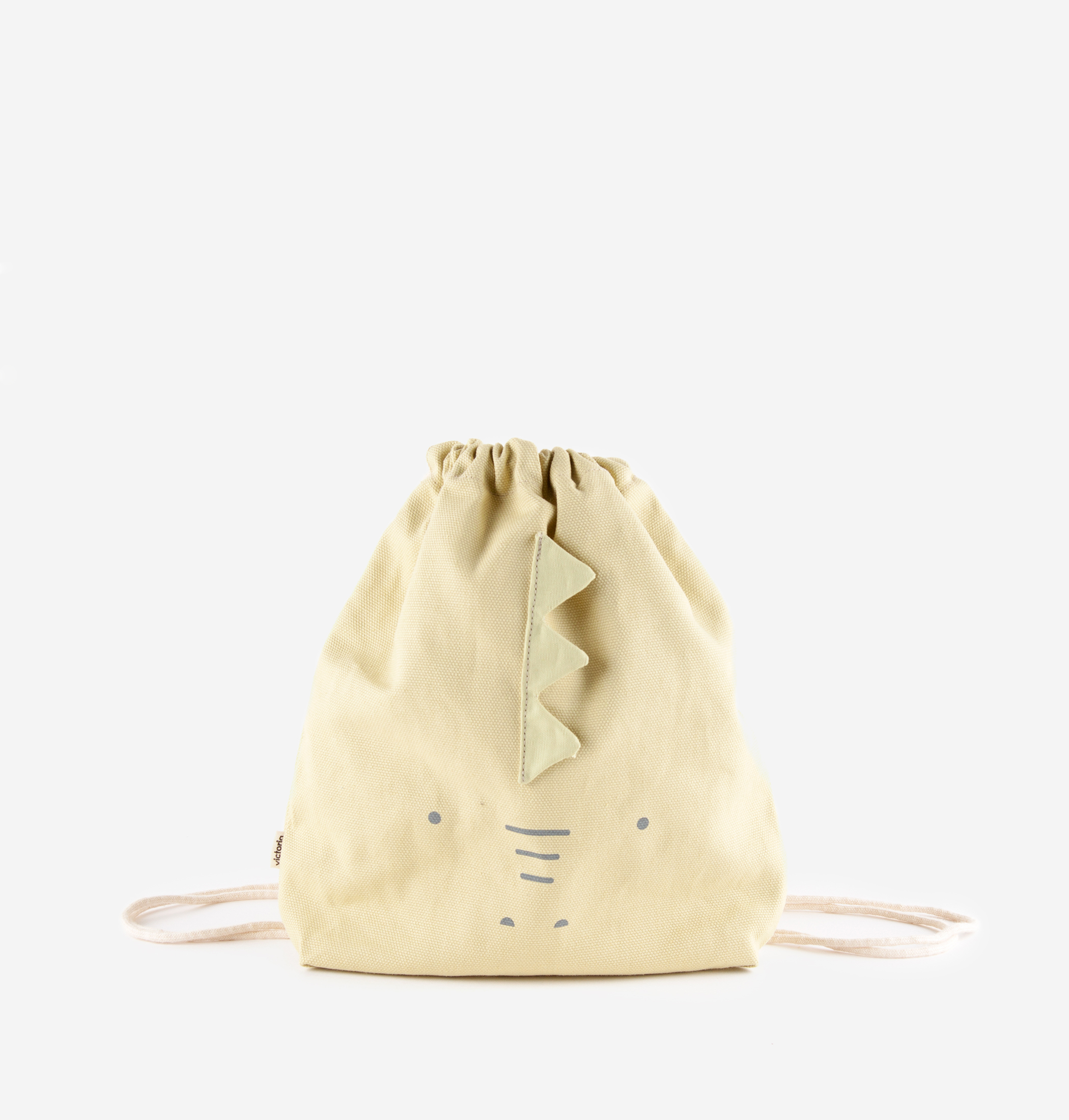 Bolsita-Mochila 100% algodón eco fabricada en España con forma de animalitos. Perfecta para los más pequeños, se abre y cierra tirando de las asas de cordón de algodón y es muy ligera y fácil de lavar.