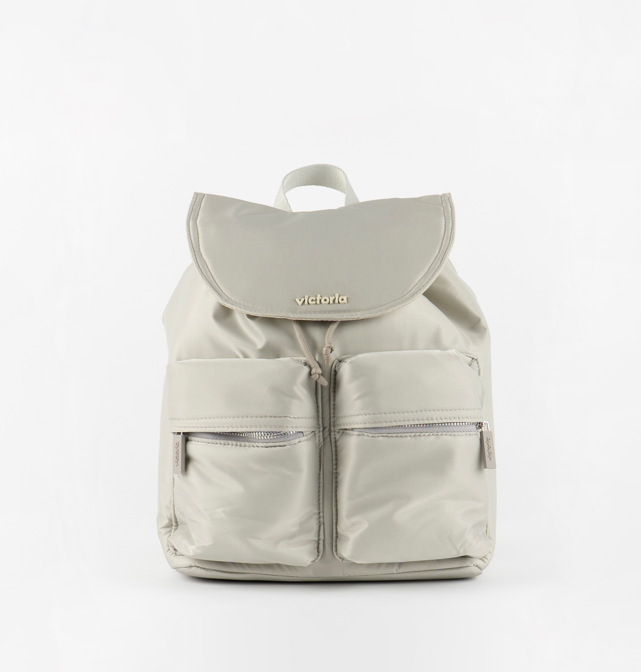 Mochila de nylon de gran capacidad para mujer. Asa de mano y compartimento principal con cierre de cordón ajustable y tapeta con clip. Presenta también dos bolsillos exteriores en relieve con cierre de cremallera y tirador de goma personalizado. Incluye forro y bolsillo interior con cremallera y tirador. Asas ajustables y respaldo acolchados para mayor comodidad. Chapita de marca exterior metálica.