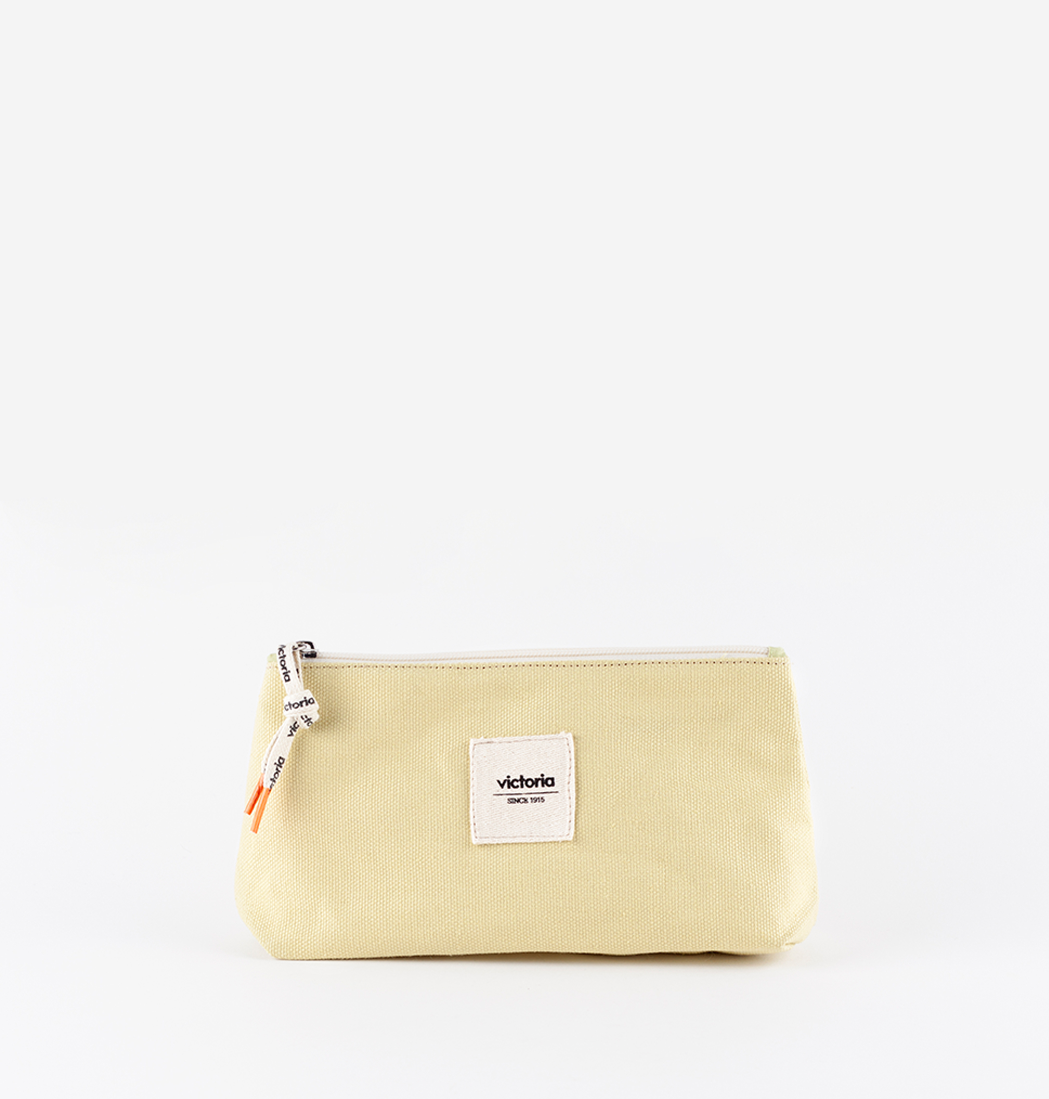 Neceser de lona 100% algodón eco con cierre de cremallera y tirador de cordón. Muy ligero y fácil de lavar. Fabricado en España.