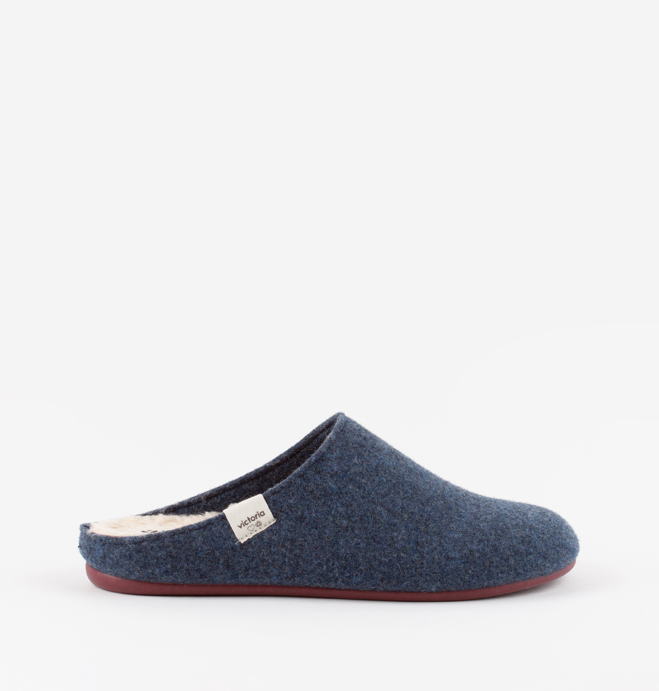 Zapatillas de casa abiertas para mujer y hombre. Fabricadas en España en fieltro reciclado. Cómoda suela de caucho vulcanizado. Incluyen plantilla extraíble de tejido tipo borreguito que aporta calidez y confort.