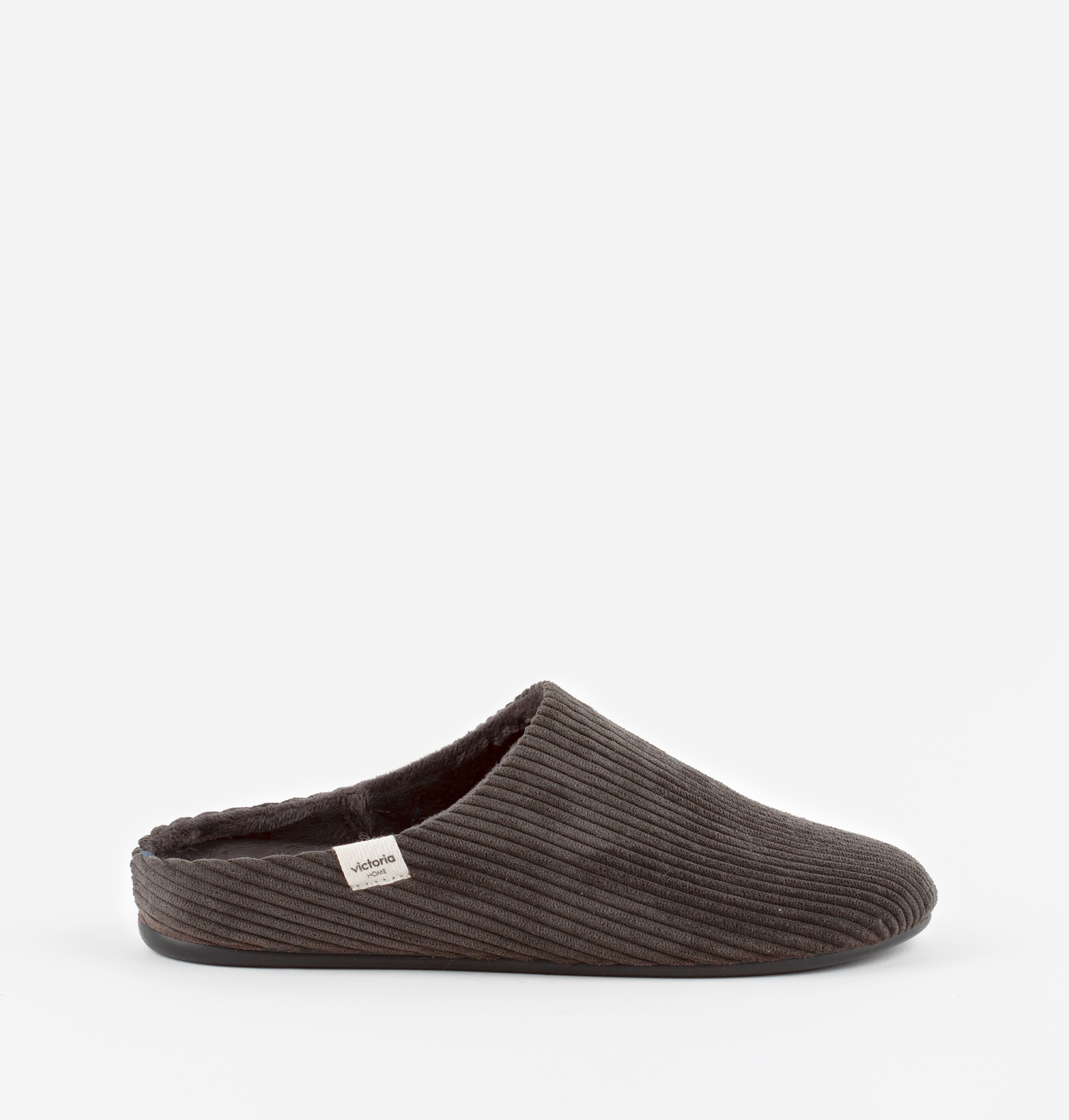 Zapatillas de casa abiertas para mujer y hombre. Fabricadas en España en pana con forro al tono. Cómoda suela de caucho vulcanizado también al tono. Incluyen plantilla extraíble de tejido tipo borreguito que aporta calidez y confort.