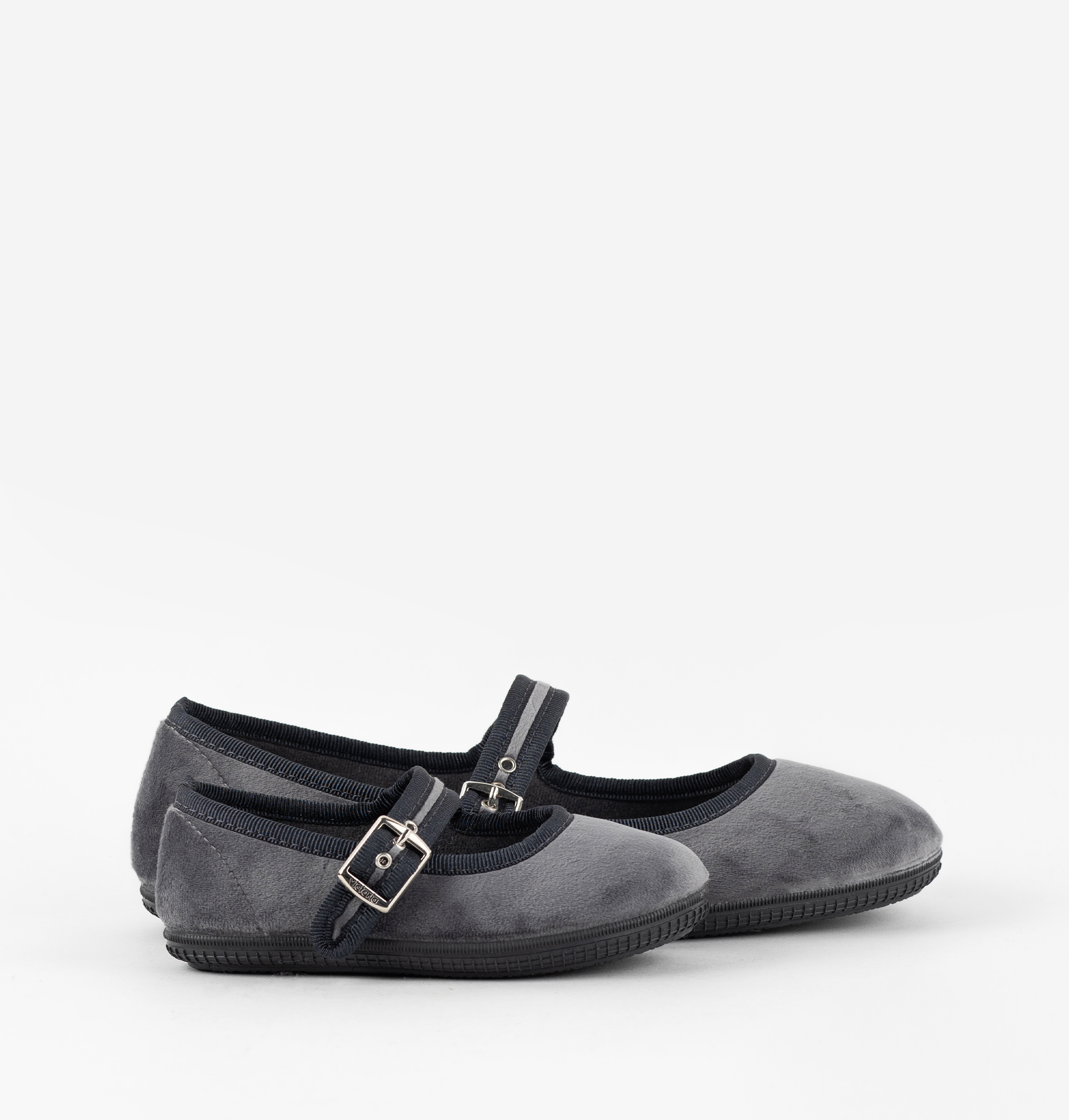 Disfruta de un estilo clásico y atemporal con estas bailarinas para mujer y niña. Fabricadas en España con terciopelo de alta calidad, ribete al tono, cierre de hebilla y suela de caucho vulcanizado para una mayor resistencia y durabilidad.
