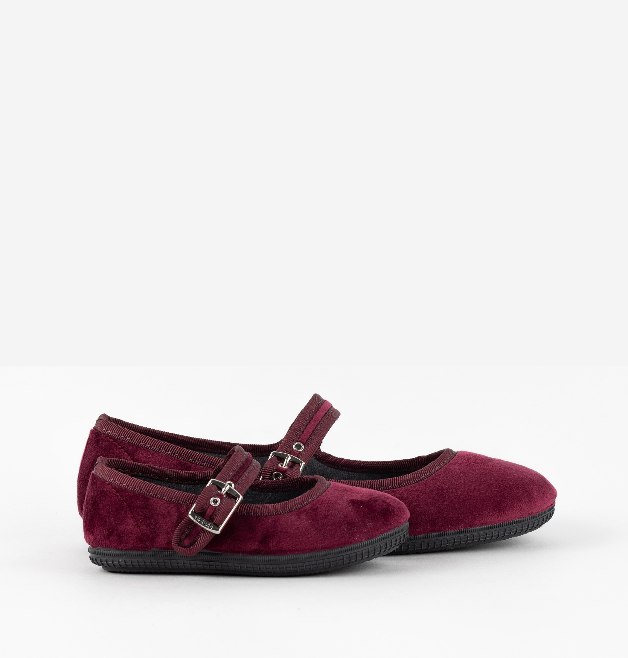 Disfruta de un estilo clásico y atemporal con estas bailarinas para mujer y niña. Fabricadas en España con terciopelo de alta calidad, ribete al tono, cierre de hebilla y suela de caucho vulcanizado para una mayor resistencia y durabilidad.
