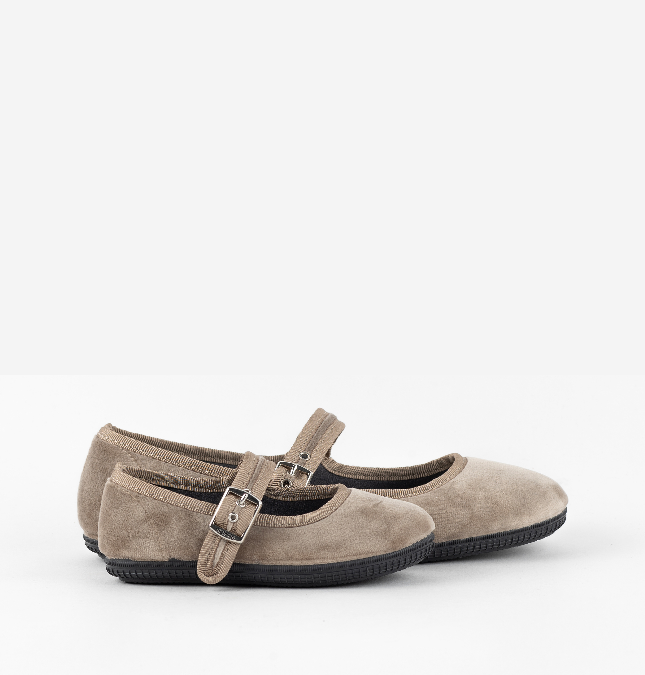 Disfruta de un estilo clásico y atemporal con estas bailarinas para mujer y niña. Fabricadas en España con terciopelo de alta calidad, ribete al tono, cierre de hebilla y suela de caucho vulcanizado para una mayor resistencia y durabilidad.