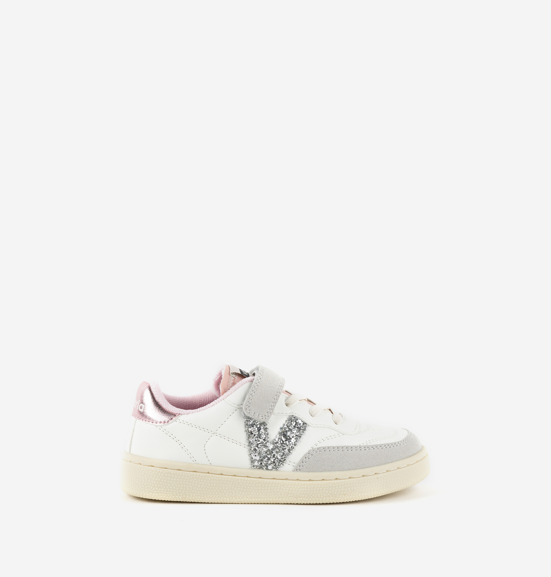 Zapatillas deportivas para niña con logo glitter y suela tostada