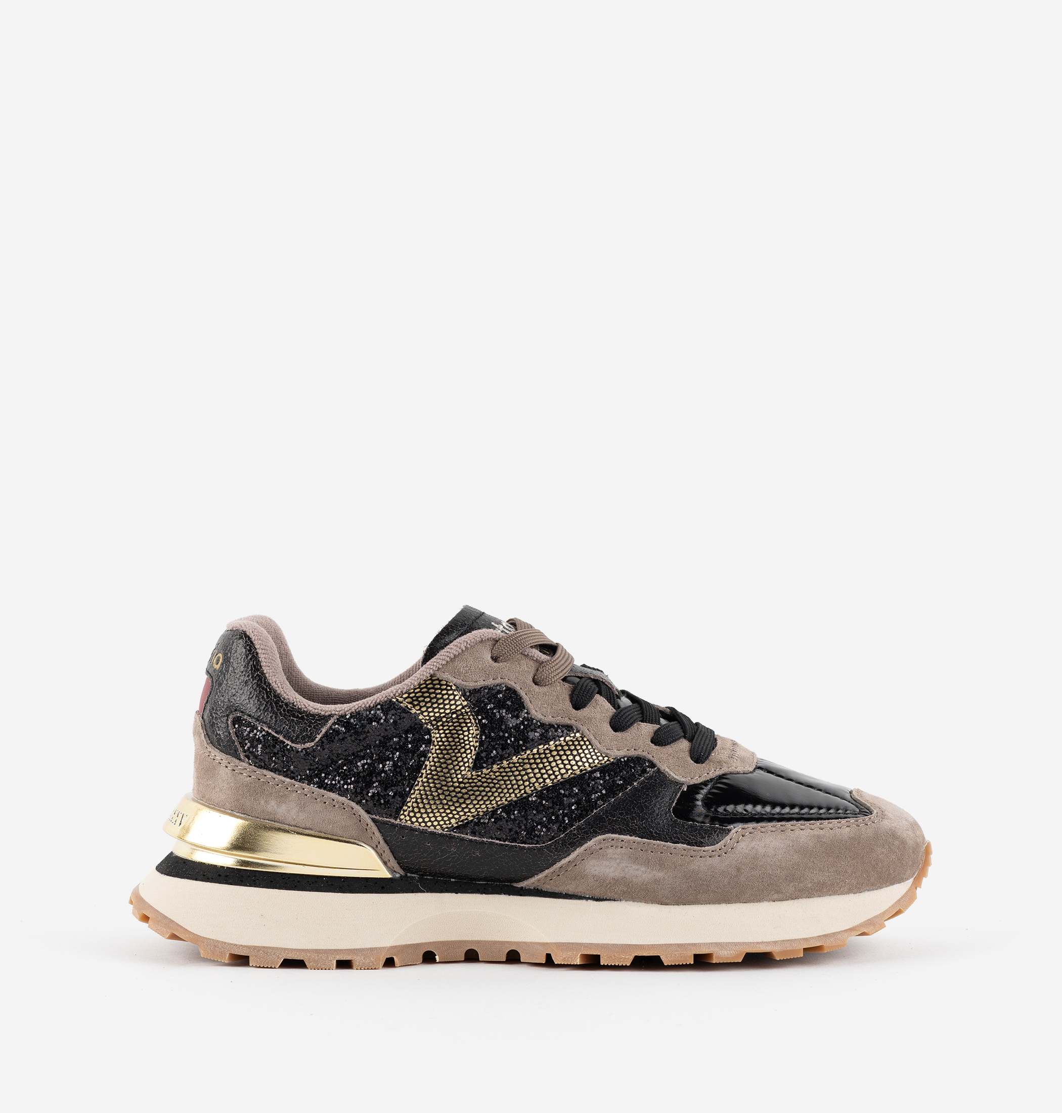 Las sneakers RUSH-GLAM para mujer de la colección 1985 son la combinación perfecta de estilo urbano y comodidad. Confeccionadas en glitter grueso metalizado con piezas de serraje acabado "velour" y de piel efecto "crack vintage". Su suela con base de caucho garantiza un agarre óptimo gracias su diseño ergonómico, mientras que la plantilla con base de espuma proporciona una amortiguación ligera para una pisada confortable.