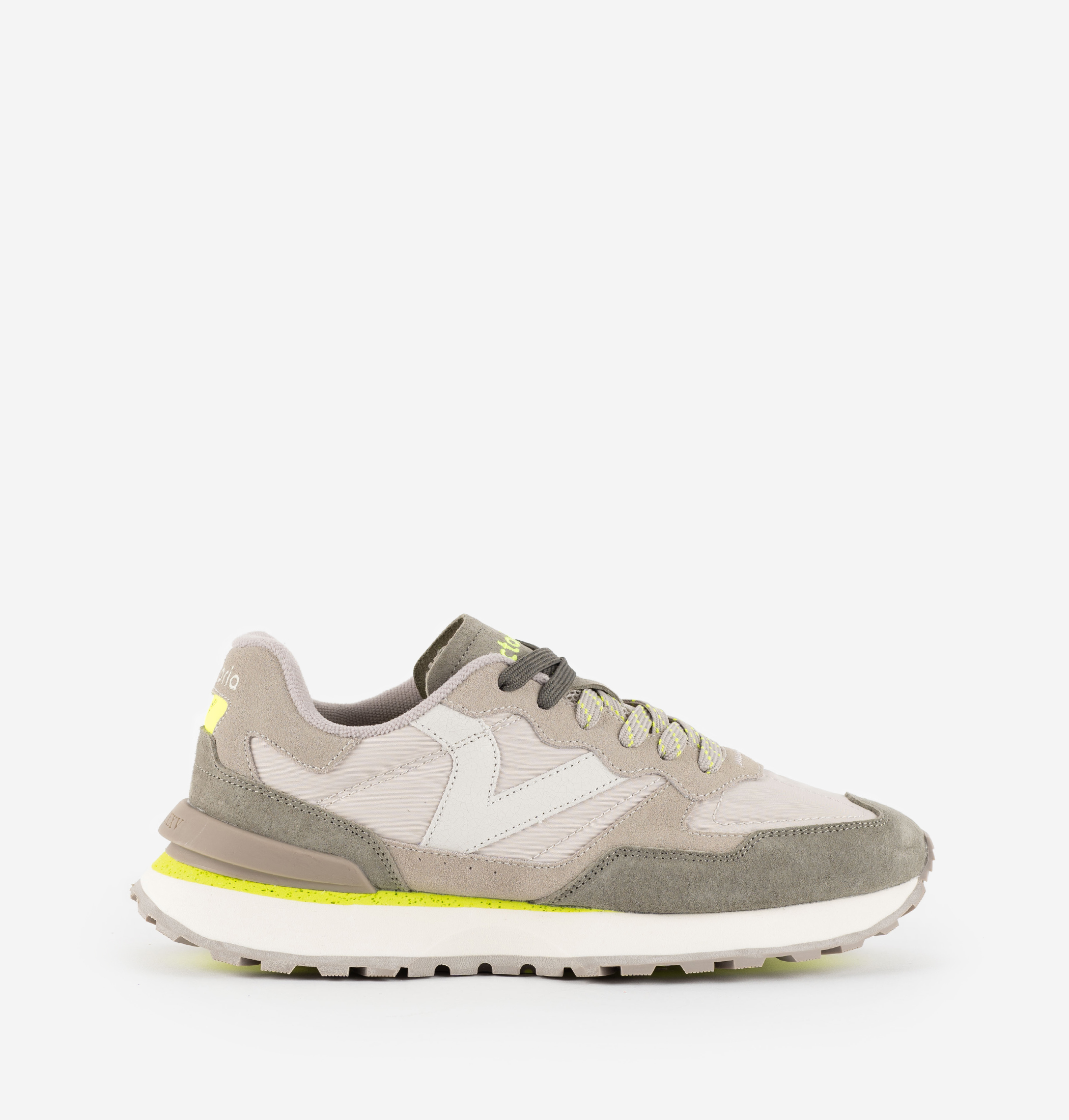 Sneakers unisex fabricadas en nylon fino "soft touch" con piezas superpuestas en serraje acabado "velour" y detalles en PU. V retro de victoria lateral en blanco. Cierre mediante cordones bicolor: unos al tono y otros con estampado. Suela de EVA bicolor con patín dentado de goma a juego y estabilizador en el talón. Incluyen además una plantilla ergonómica que se adapta a la forma del pie y regala la sensación de comodidad.
