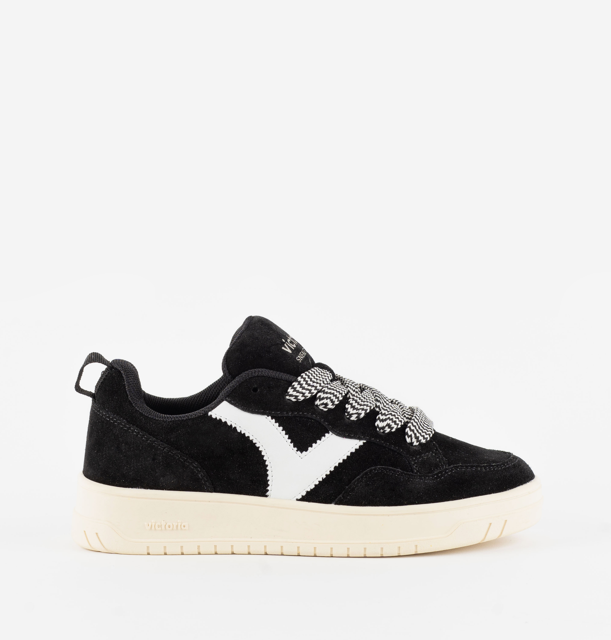 Logo del lateral en efecto piel blanca en contraste y tirador trasero. Cierre mediante cordones extra gruesos al tono. Suela ligeramente tostada de 3,5 cm. Incluyen una plantilla extraíble acolchada para mayor confort.