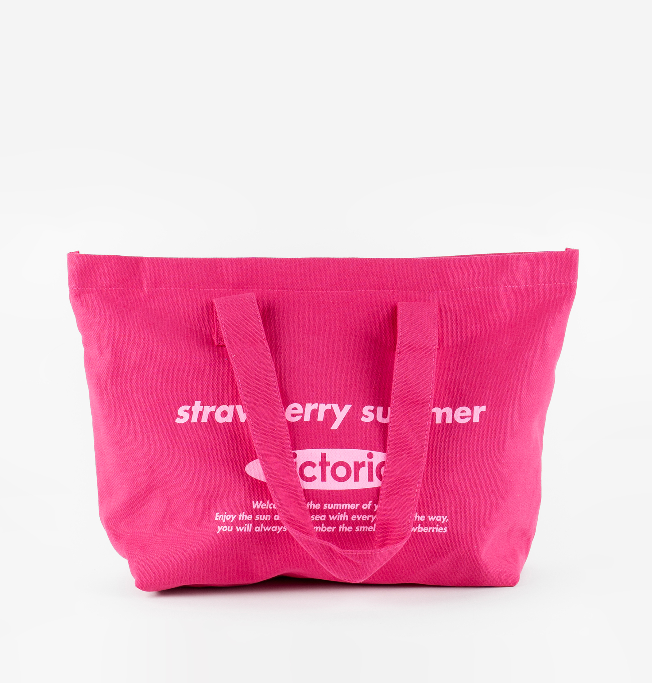 Bolso shopper de algodón de gran capacidad para mujer con doble asa y mensaje estampado. Cierre de cremallera con tirador de goma personalizado. Incluye forro y un bolsillo interior con cremallera y tirador. Incorpora también un práctico cordón interior que permite enganchar un monedero o neceser.