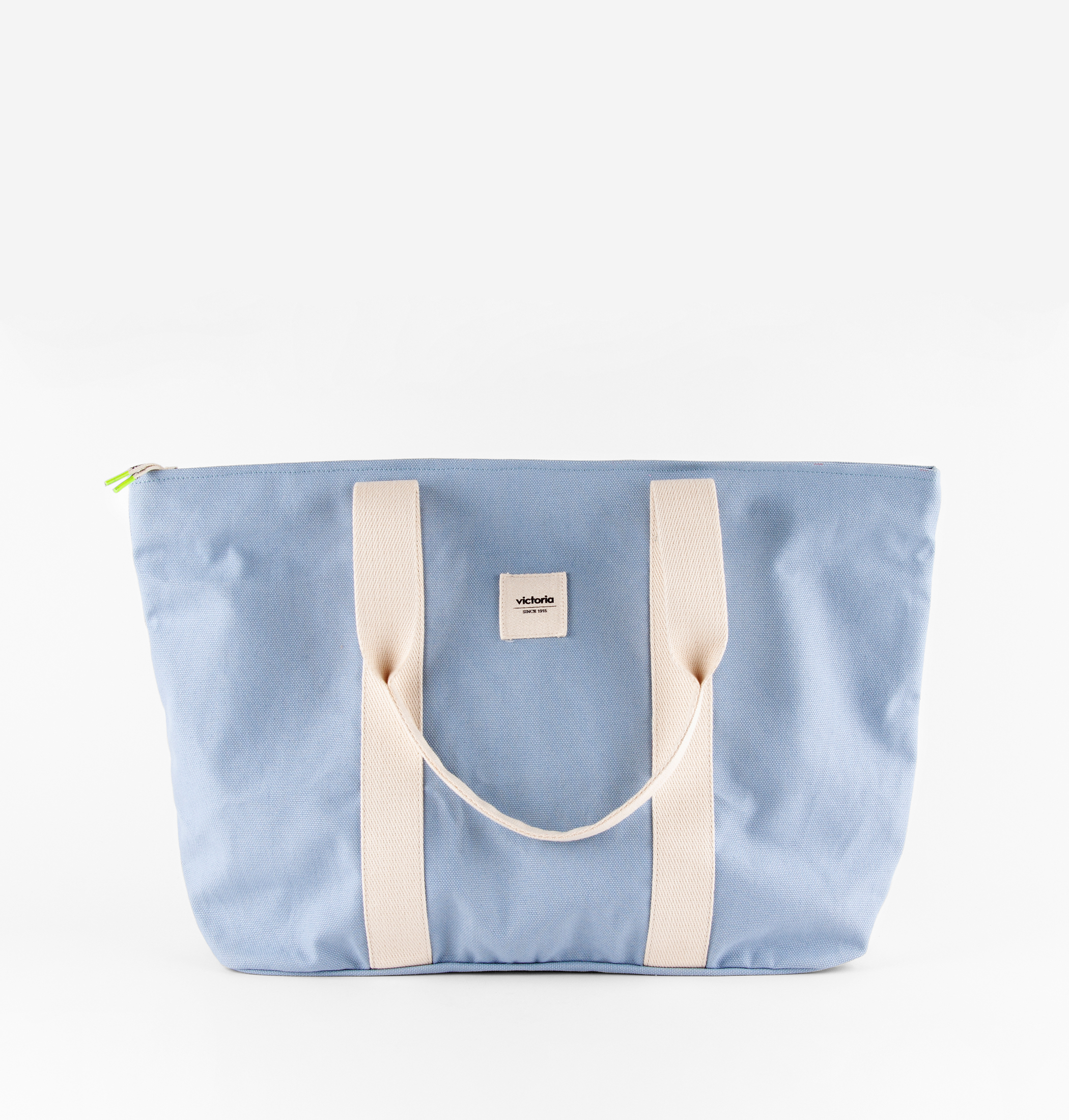 Bolso shopper de gran capacidad elaborado en lona 100% algodón eco, con resistentes asas de algodón y cierre con cremallera con tirador cordón. Ligero y fácil de lavar, y hecho en España.