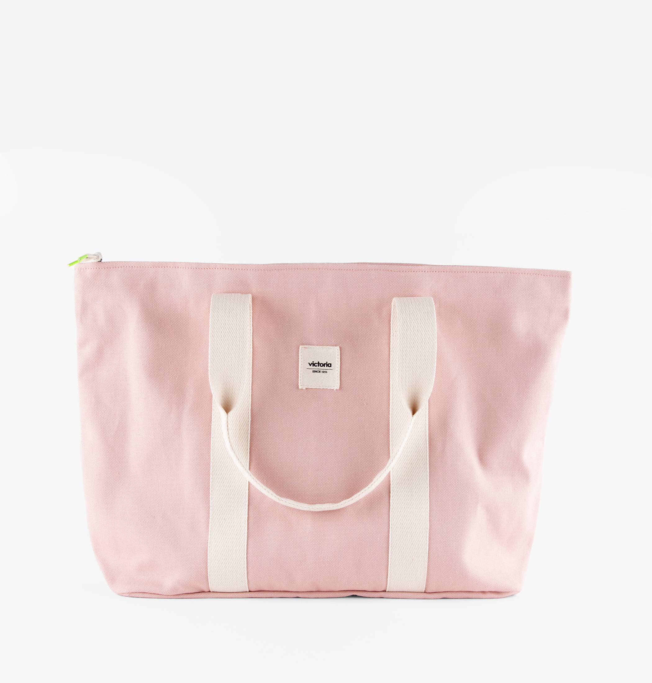 Bolso shopper de gran capacidad elaborado en lona 100% algodón eco, con resistentes asas de algodón y cierre con cremallera con tirador cordón. Ligero y fácil de lavar, y hecho en España.