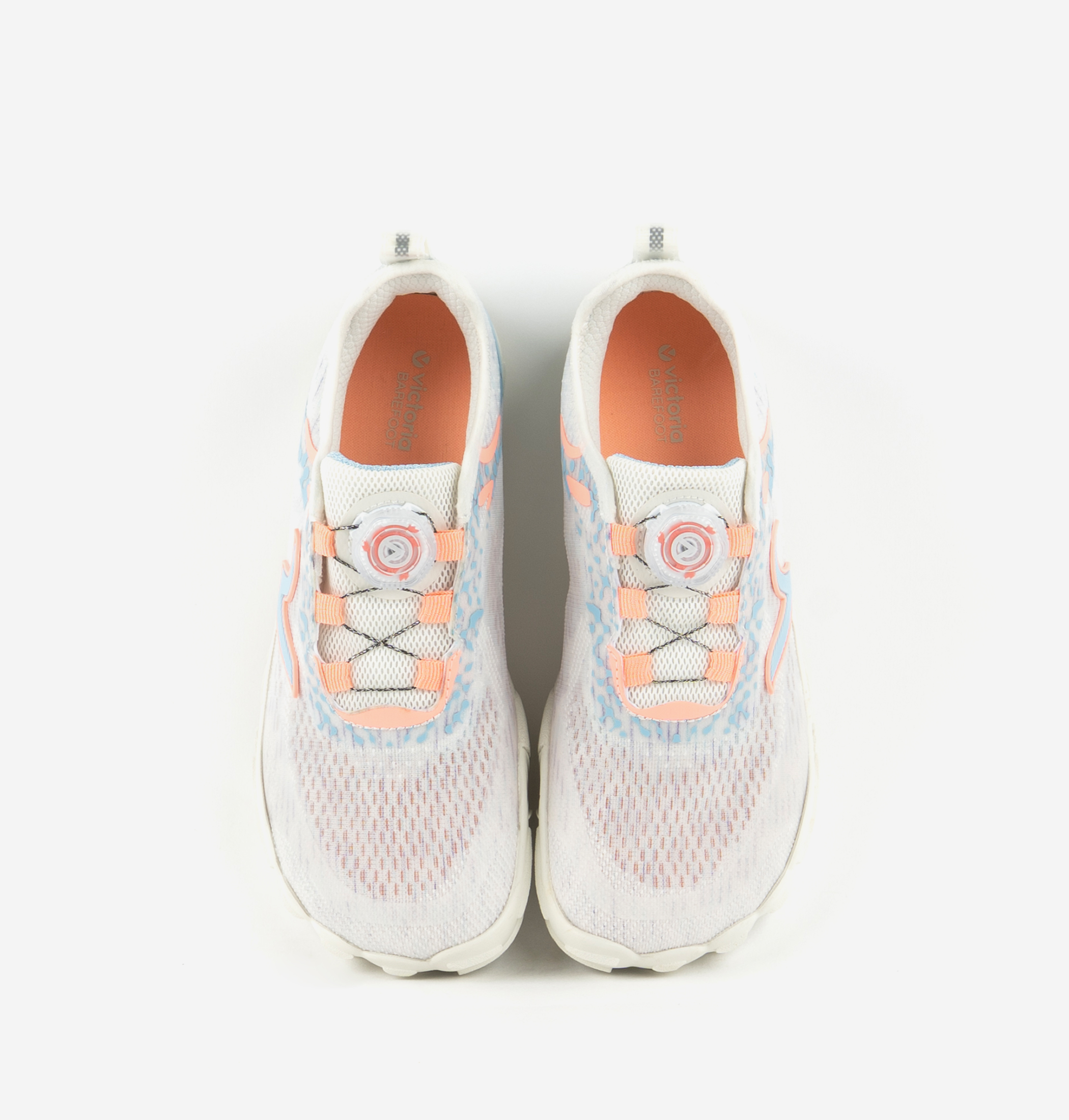 Zapatillas barefoot para mujer fabricadas en tejido tipo malla. Cierre mediante cordones elásticos con sistema autobloqueante, que permiten un ajuste rápido y cómodo sin necesidad de anudar. Cuentan además con un tirador trasero para facilitar el calce. Suela de goma con diseño ondulado y volumen, que aporta agarre y estabilidad.