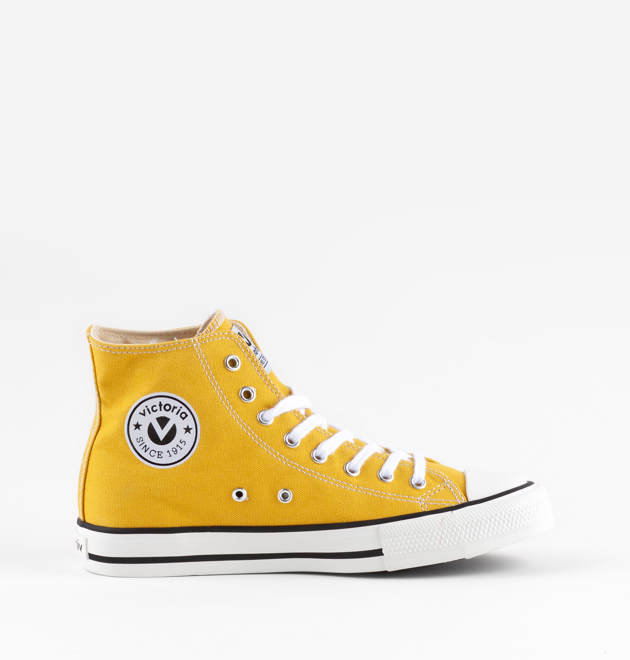 Zapatillas de caña alta fabricadas en lona para adulto y niño. Parche de victoria impreso en el lateral interior y etiqueta en la lengüeta. Suela de goma con refuerzo en la puntera para mayor resistencia y durabilidad.