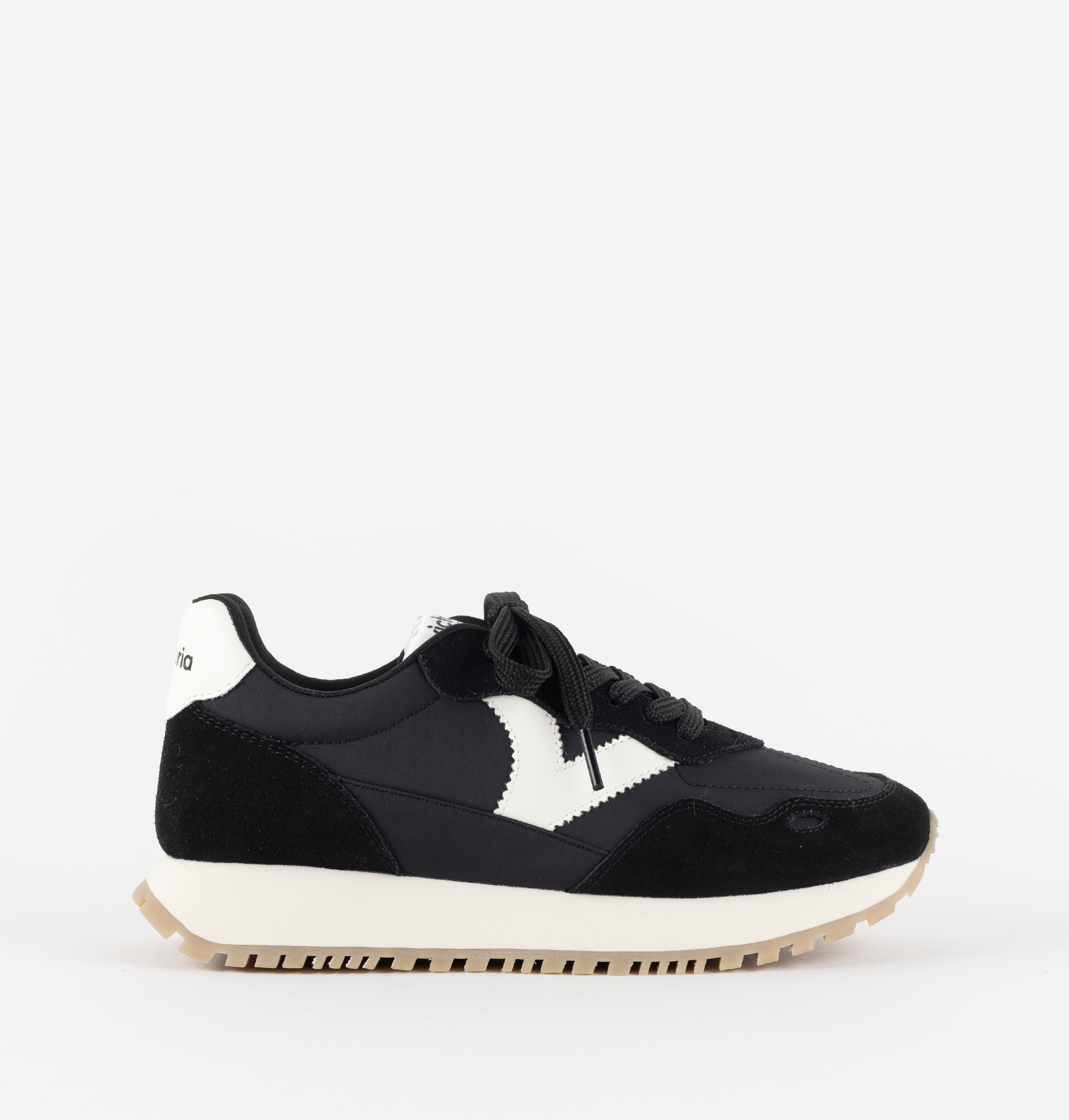 Sneakers para mujer fabricadas en nylon con piezas de serraje superpuestas al tono. V de victoria lateral y pieza trasera con el logotipo de la marca en colores efecto piel a juego en contraste. Cómoda suela de phylon con patín de TPR en relieve color caramelo.